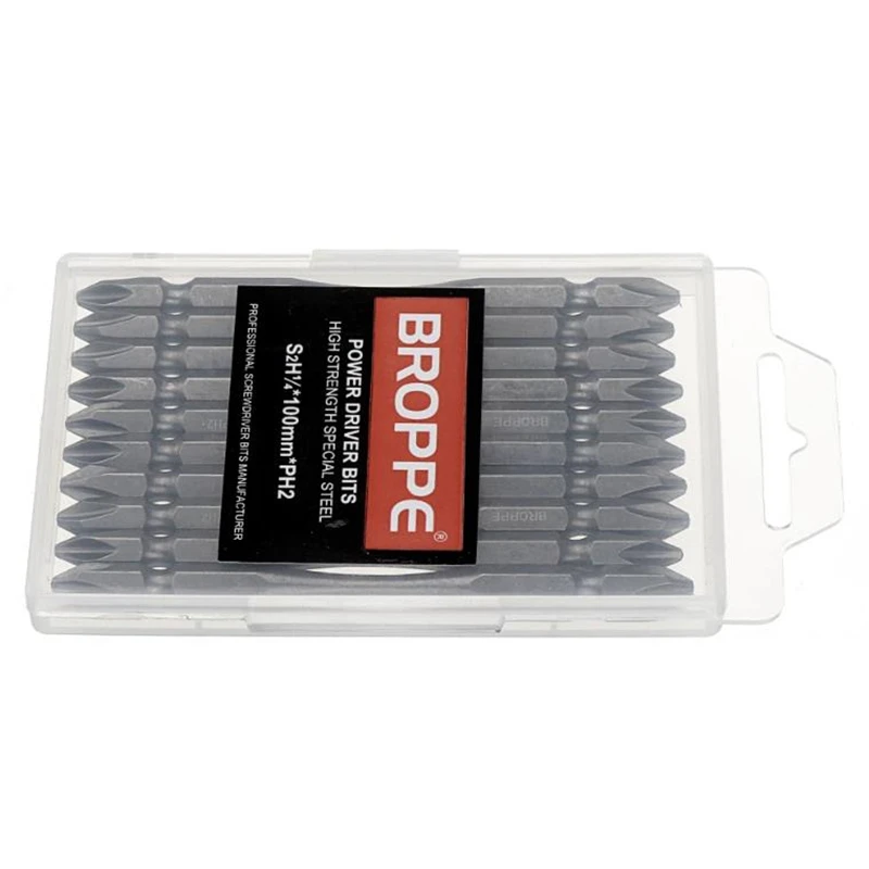 Описание:BROPPE 10 + 1 100 мм PH2 S2 сплав сталь Магнитная двойная головка электрическая отвертка Набор бит с одним B типа магнитное кольцоСпецификация: