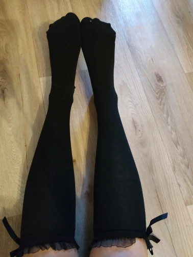 Пришли бракованные. На фото видно. Кружева пришили как попало, пожалев несколько сантиметров. Длинна при росте 157(вес 45) ниже колена. на колено просто не натягивается, именно в длину. Открыла спор (за брак), гуманно поставив 40р от стоимости на возврат. Спор удовлетворили в мою пользу почти сразу. Товаром весьма разочарована. Я люблю чулки в том числе потому, что ими можно прикрывать шрамы на коленях, чтобы ножки выглядели идеально. А тут меня совершенно позорно подвели! 157 довольно низкий рост, и я люблю покупать товары с али, тк здесь изображения обычно соответствуют тому, как товар будет на мне выглядеть. А тут вот не повезло Что понравилось, так это пяточки. Они подходят под мой размер ноги (34.5)! Так что ставлю 3 звёзды здесь, и 5 на других параметрах (Доставка месяц, с продавцом не стала общаться). Думаю, мой отзыв будет очень полезен: это короткие гольфы, а не чулки, а с браком как повезёт П. С. Ткань к телу приятная. Пока не придумала, как их буду носить) ^ω^