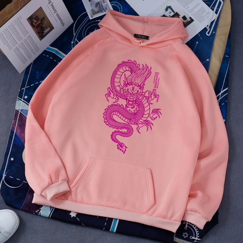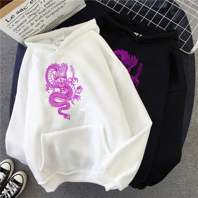 Женская толстовка с капюшоном, в стиле Харадзюку, с принтом китайских Драконов
