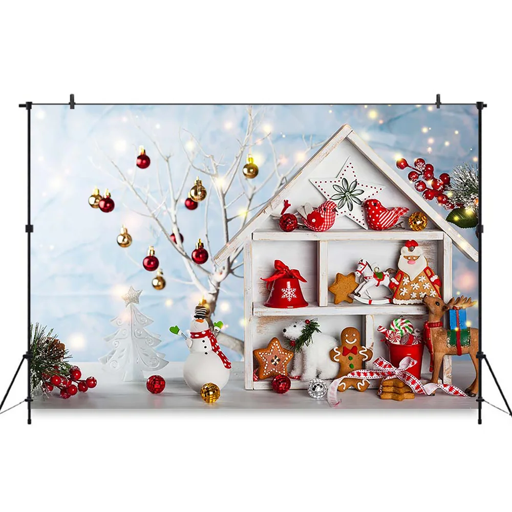 Рождественский фон для фотосъемки Голубой Дом венок Рождественская ...