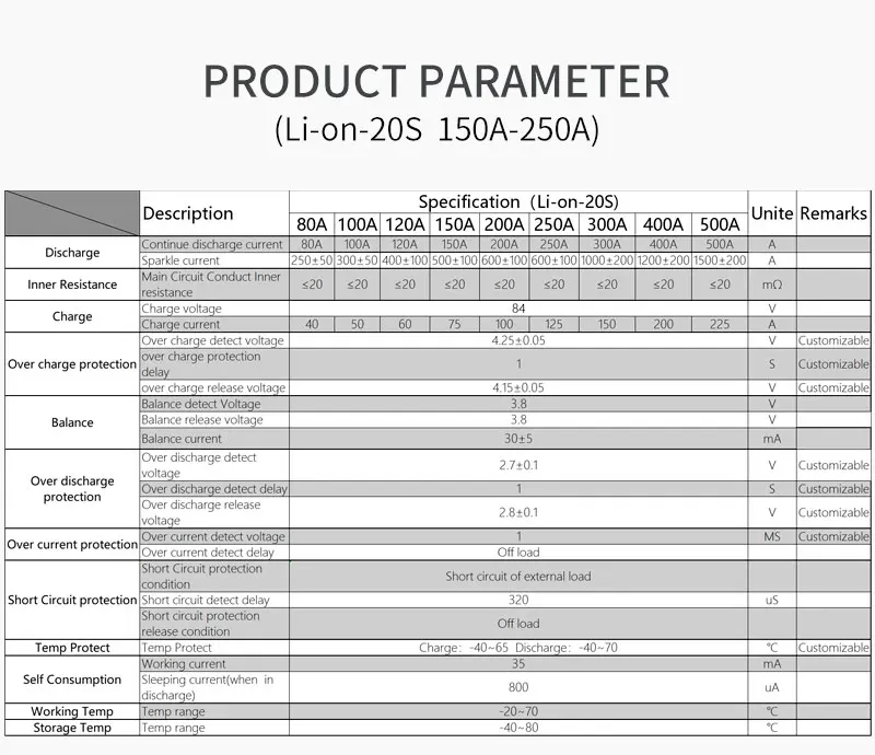 Daly 18650 smart BMS 20S 72V 150A 200A 250A Bluetooth 485 к USB устройству CAN NTC UART программное обеспечение Li-on плата защиты батареи BMS◆ В настоящее время все умные BMS без водонепроницаемой функции.◆ Эта ссылка предназначена для литий-ионного аккумулятора 20S 72V. Пожалуйста, заполните параметр после размещения заказа, чтобы обеспечить SOC правильной информацией.По крайней мере, ответ должен быть отправлен нам Aliexpress центром сообщений. Спасибо.Особенности◆ UART: это обычный продукт Daly. UART является универсальным асинхронным приемником/передатчиком, он трансформирует данные для передачи между последовательной связью и параллельной связью. Как чип для преобразования параллельных входных сигналов в серийные Выходные сигналы, UART обычно интегрируется в другие коммуникационные интерфейсы.◆ RS485: Пожалуйста, выберите модель RS485 Daly. RS-485 принимает сбалансированную передачу и дифференциальный прием, поэтому он имеет способность подавлять помехи в обычном режиме.◆ Модуль Bluetooth: если вам нужна эта функция, пожалуйста, выберите модуль bluetooth, если вы не покупаете его, мы не отправим его вам.◆ Ниже аксессуары нужно купить отдельно.1.USB к UART кабель 2.USB к RS485 кабель 3. Модуль Bluetooth 4. Панель дисплея питания (активация ключа) 5.BMS сенсорный экран управления1. DL20S 72V Smart BMS 150A 200A 250A bms можно использовать для 20S Li ion или LiFePO4 или аккумулятор лто pack. Клиент может отрегулировать paramter перезарядки или переразряда параметр сидя и другие параметры, если клиенту нужно использовать какой тип батареи для той же серии батареи.Внимание:Клиент должен определить серии батарей, затем выбрать ту же серию BMS. Например, ваш аккумулятор 24S, вы должны выбрать 24S BMS, не можете выбрать 20 или другой. Номер серии BMS фиксирован, не регулируется после отправки BMS.◆ Инструкции по управлению: контроль устройства дистанционного управления.◆Значок транспортного средства: передача данных отправка команды◆Статистический отчет: собирайте информацию о данных, клиент может контролировать емкость аккумулятора и другую информацию о тревоге.◆Электронный забор: Предельный Диапазон забор.◆Информация об устройстве: информация о параметрах устройства и т. д.Информацию о вашем аккумуляторе можно проверить на вашем хост-компьютере, затем вы можете контролировать состояние батареи в любое время. Который легко контролирует ваше устройство. Умные BMS делают нашу жизнь легкой.