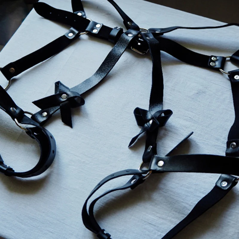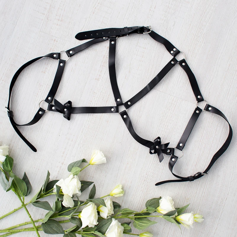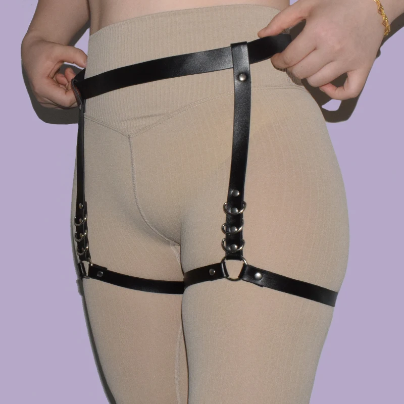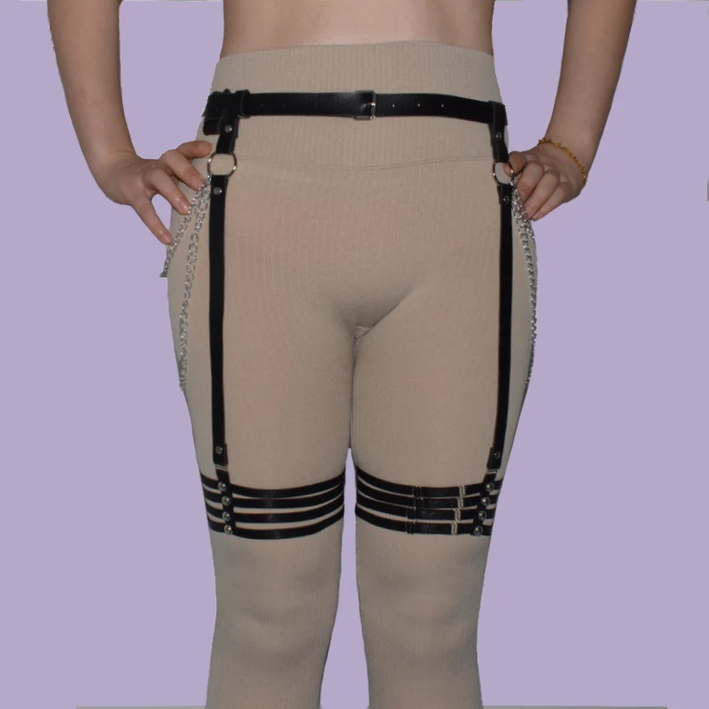 Ремень женский кожаный черный с цепочкой, подвязка на бедро