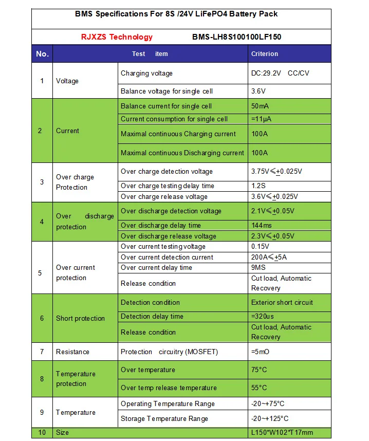 8S_100A_RS485: 8S 100A BMS, с RS485 портом связи