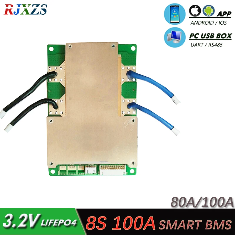 XiaoXiang BMS 8S 80A/100A smart baord LiFePO4 (3,2 V) BMS/PCM/PCB плата защиты аккумулятора для 8 упаковок 18650 батарея с функцией баланса, с переключателем температуры, с приложением,