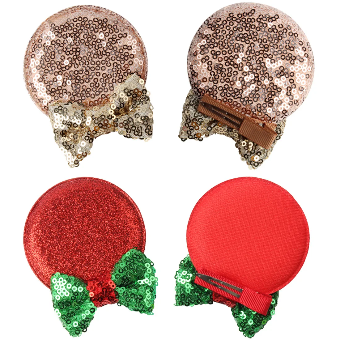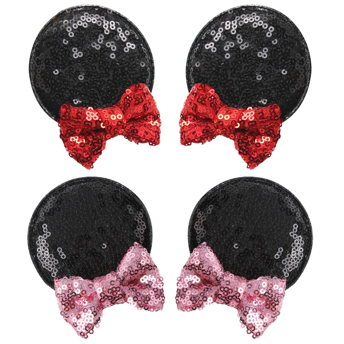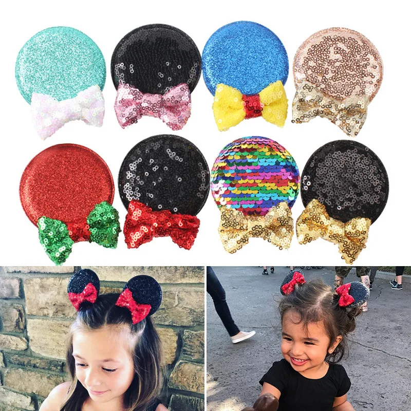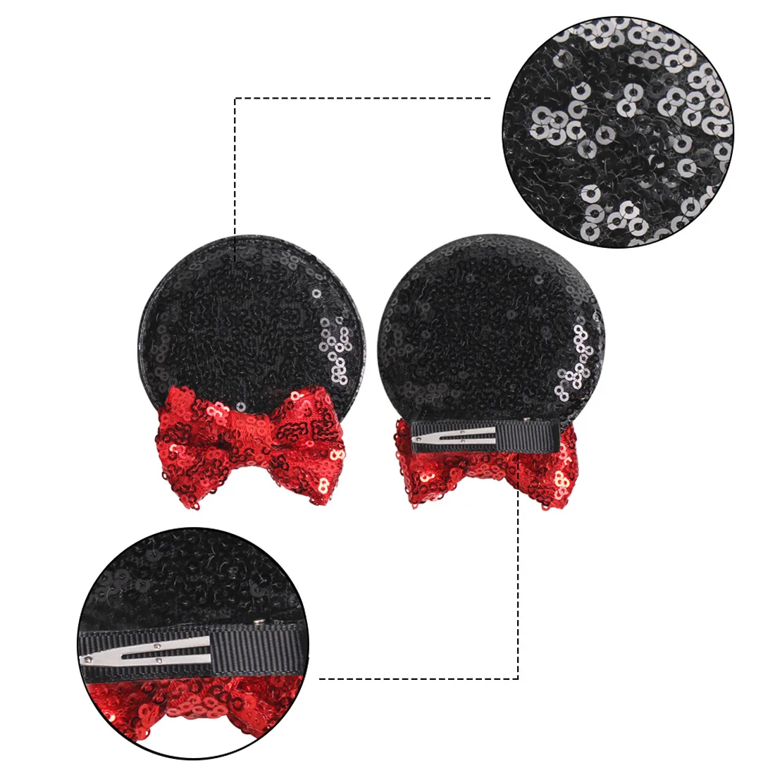 Заколки для волос для девочек, с мышиными ушками, с блестками, бантики для волос с пайетками