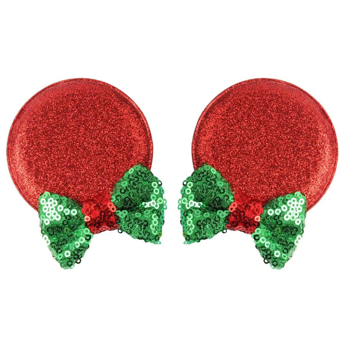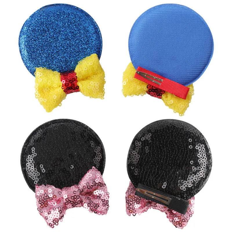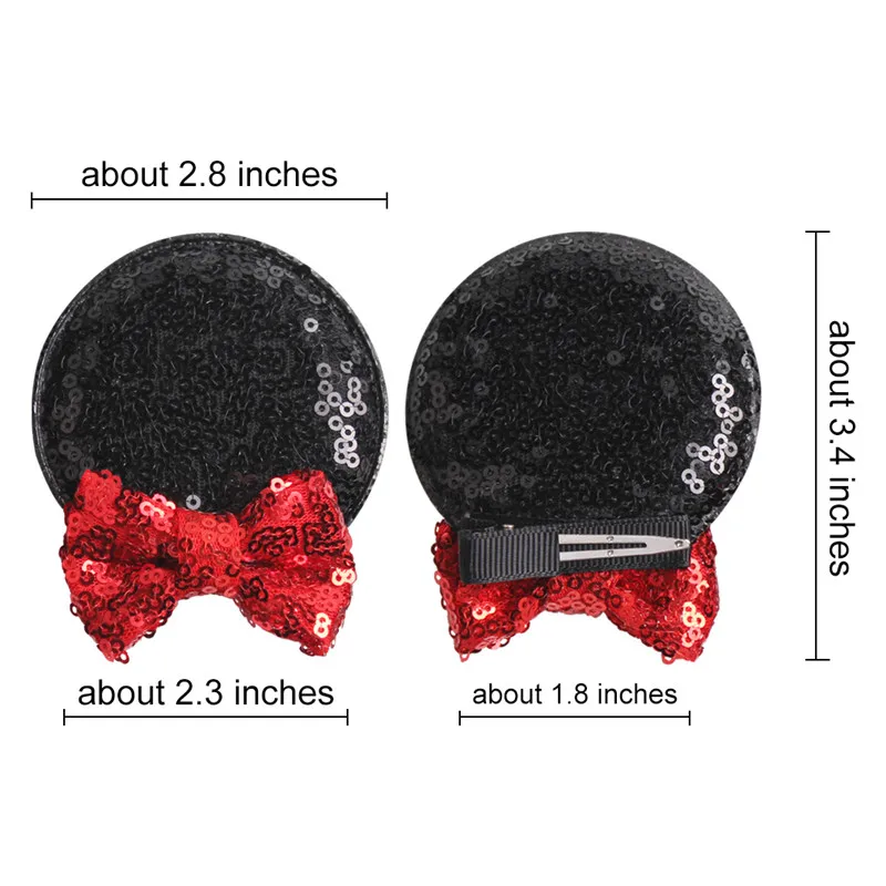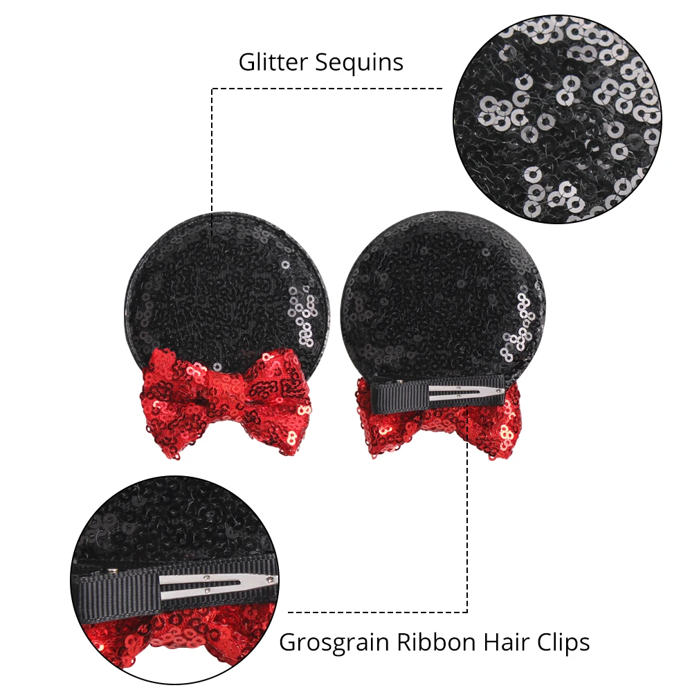 Заколки для волос для девочек, с мышиными ушками, с блестками, бантики для волос с пайетками