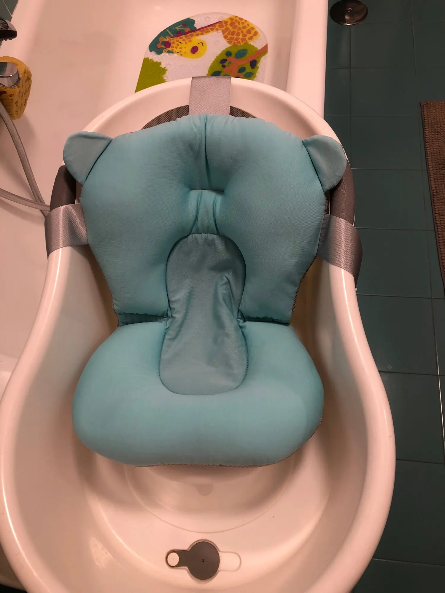 Выручает при купании малышки. Отлично держит на воде, правда попа сержант вниз немного. Ремни не регулируются, но можно подвернуть и прицепить к ванне. Супер