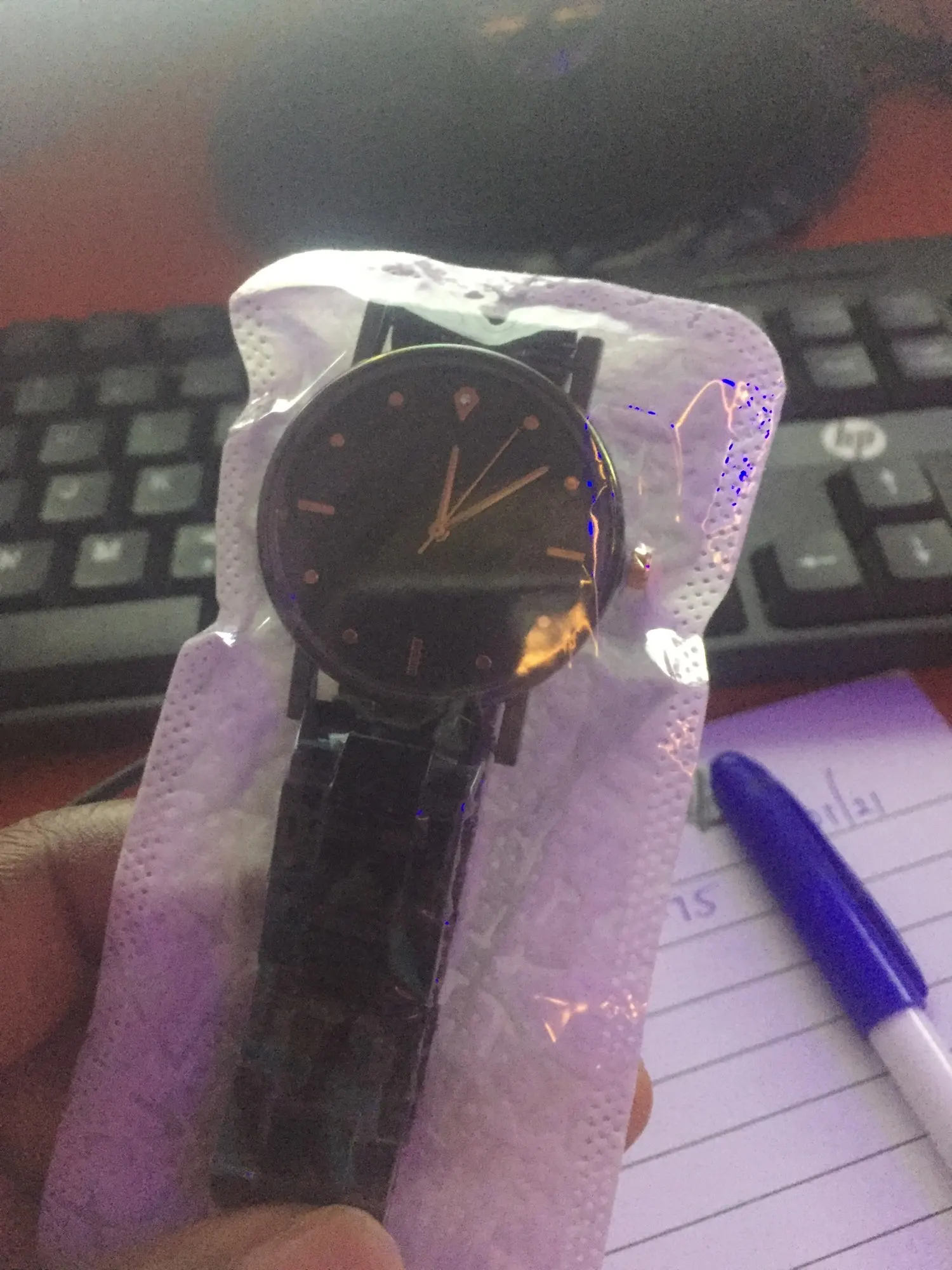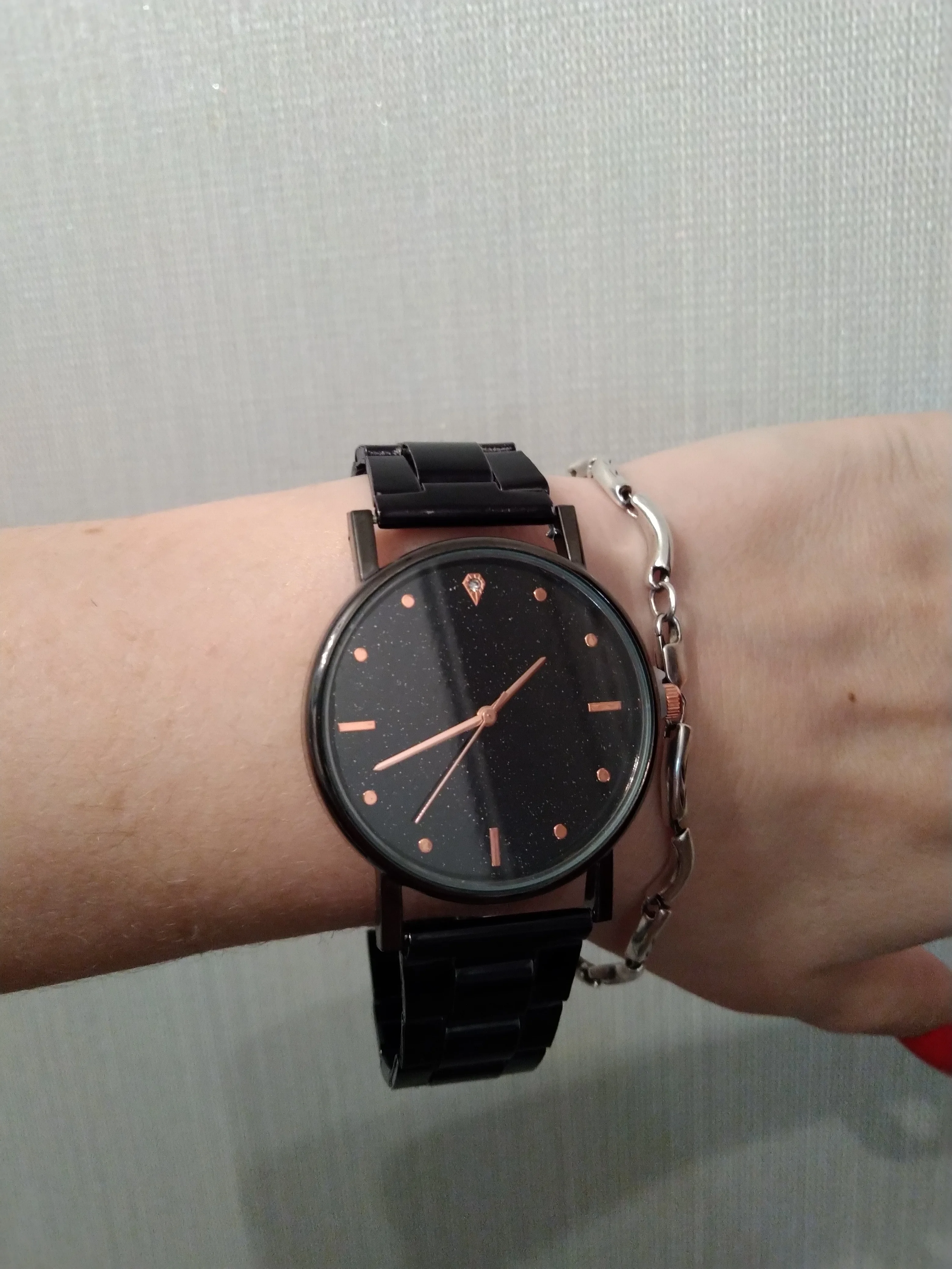 Отличная безопасная упаковка, красивые часы, дешевый/легкий материал, но выглядит красиво. Наручный ремешок немного великоват, поэтому придется удалить некоторые звенья, но, как правило, действительно хорошие часы, поставляется с батареей.