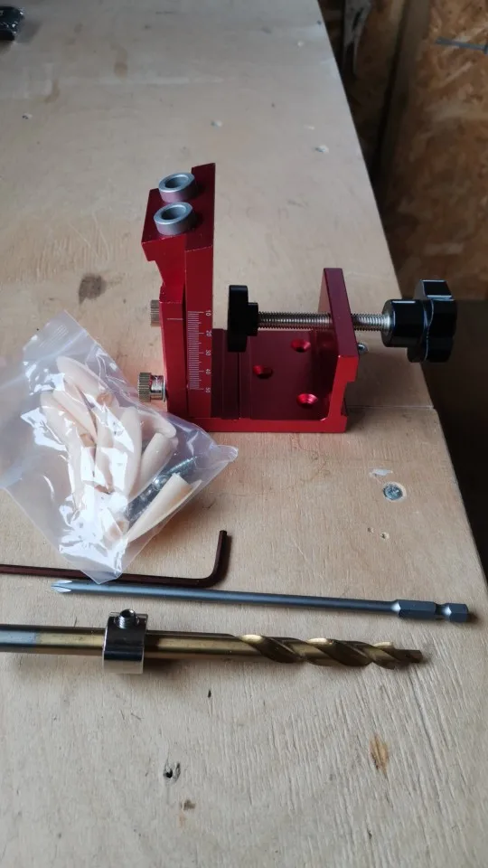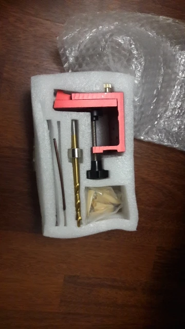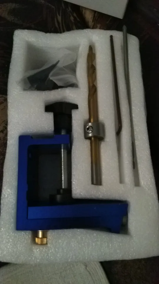 В принципе что заказывал то и получил. Анодированный алюминий, стальные втулки, сверло под них и псевдо креговские саморезы. втулка внутренним диаметром 9 мм. сверло 8.93. креговский крепеж идёт лесом, имейте в виду, т.е. сразу надо заказывать сверло 9.5 саморезы под крест в принципе похожи, но креговские под квадрат обработаны лучше, на этих явно много облоя. креговские позиционируются и держатся на бите, эти нет. втулку надо рассверливать, сверло на выкид вместе с комплектными саморезами. саму приблуду рекомендую.