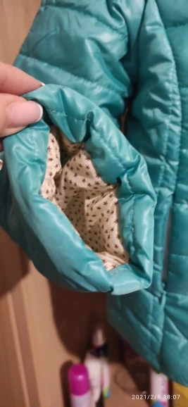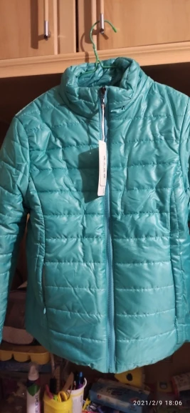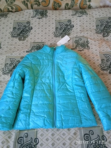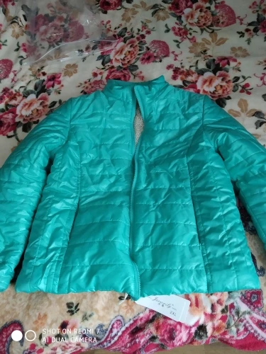 Доставка - две недели. Бирюзовый цвет ближе к мятному. Заказала 3xl на 46-48 RUS, немного впритык по груди, плоско, как на фотографиях. Длина куртки и рукавов соответствует. Местами строчка петляет. Наполнителя внутри много, хлопковая подкладка приятна на ощупь.