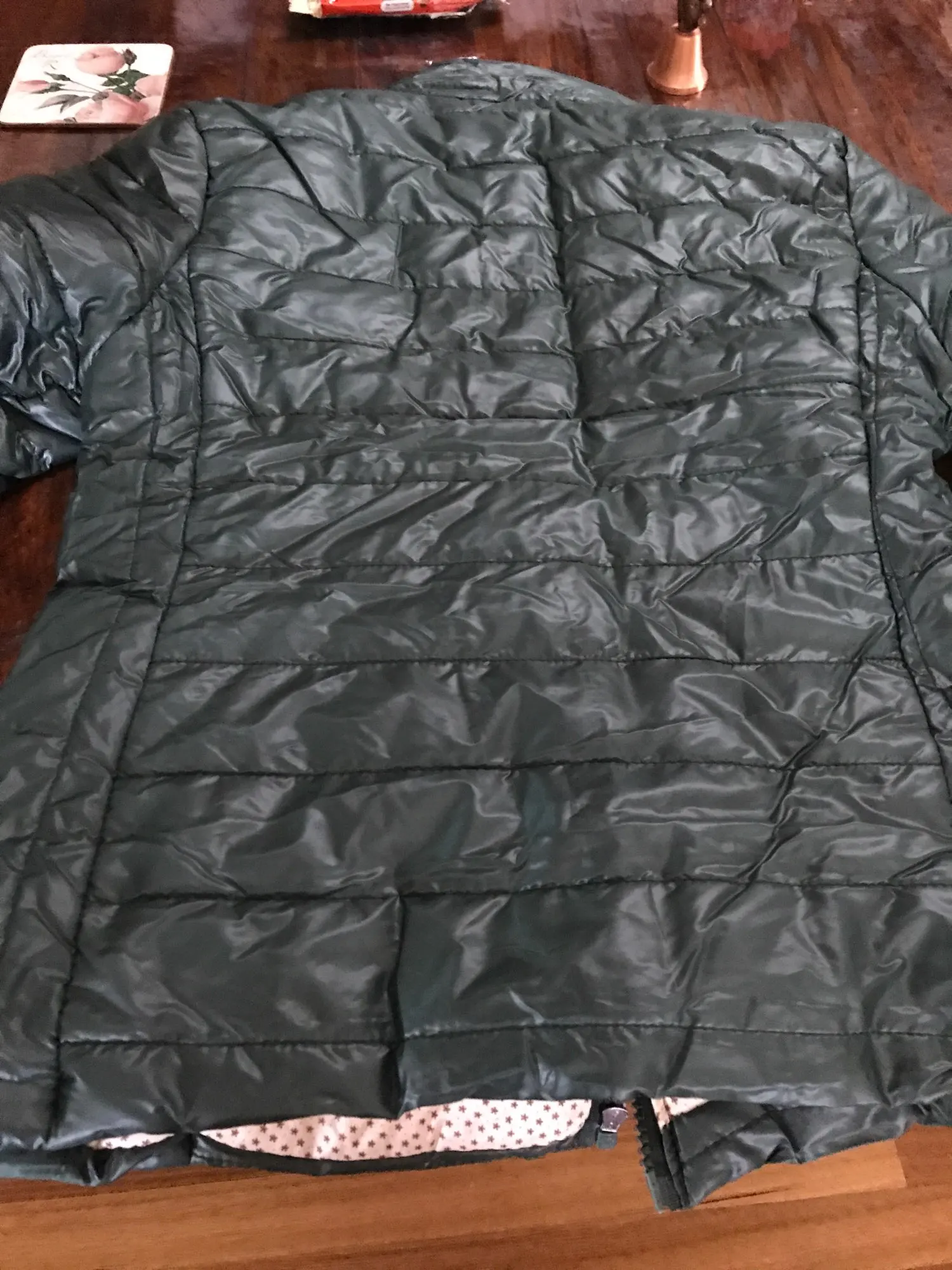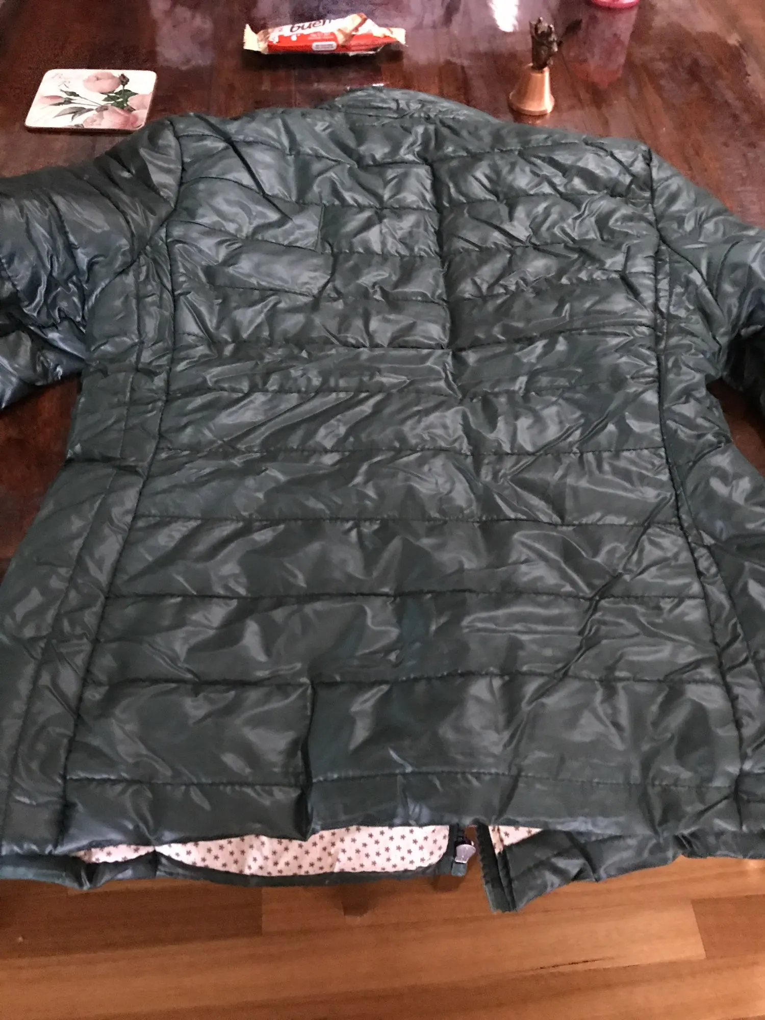 Эта куртка красивая, толщину куртки можно носить зимой в моей стране, мне нравится нефритовый цвет, он выглядит по-разному по сравнению с другим зеленым цветом. Но, к сожалению, из-за плохого качества изготовления, у меня нет уверенности в том, что носить его, из-за разной строчки везде. (1) швы на воротнике отличаются друг от друга; (2) швы с вертикальной прошивкой спереди слева и справа отличаются друг от друга, от рукава вниз до кармана постоянно до нижней части куртки, одна сторона со швом и одна сторона без швов. (3) И вертикальные швы сзади, левая сторона имеет заметную прошивку, а правая сторона имеет более узкие и изогнутые растягивающиеся швы. Вы судите, дайте мне знать, как это исправить?