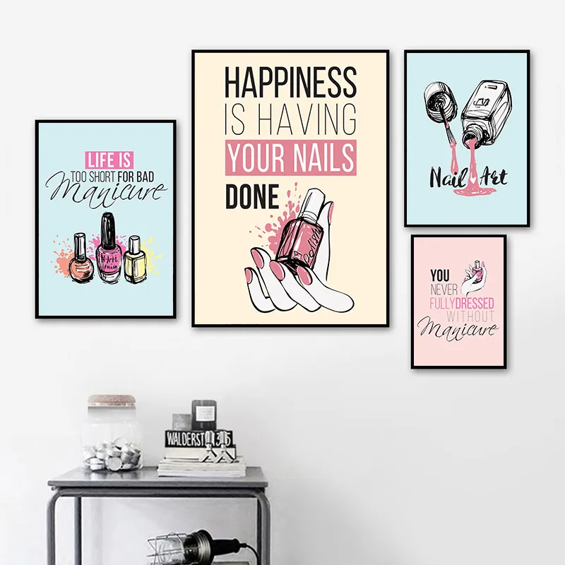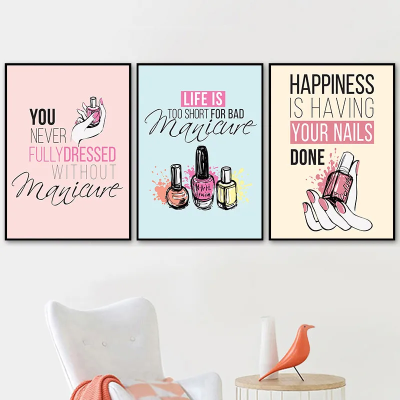 Современный лак для ногтей, цитаты, настенная живопись на холсте, скандинавские постеры и принты, художественный салон, настенные картины для девочек, спальни, YX208