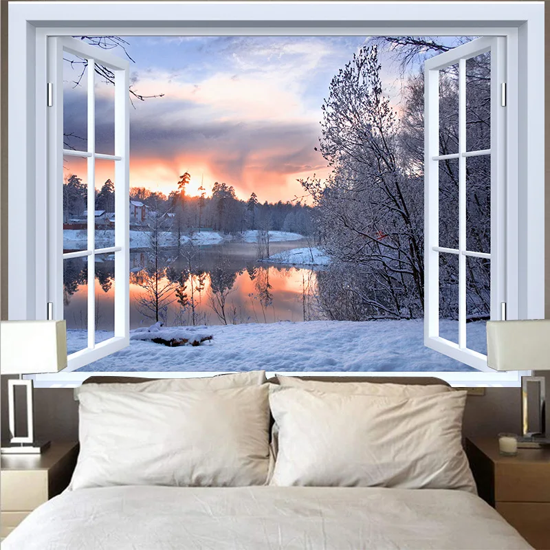 Горячая Распродажа гобелен с изображением из окна, настенная ткань, пейзаж, подвесная ткань, декор для гостиной, домашний фон, настенное покрывало, кровать tap14