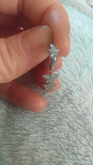 серёжечки маленькие,но очень симпатичные,хорошо смотрятся на маленьких ушах,красиво болтаются и блестят.Правда замочки очень слабенькие,открываются при надевании свитера