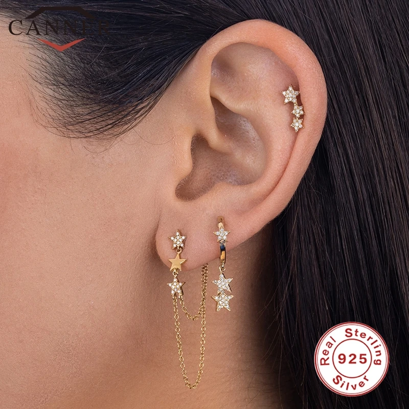 Женские серьги-кольца CANNER, серьги из настоящего серебра 925 пробы с кристаллами циркония, Минималистичная Подарочная бижутерия