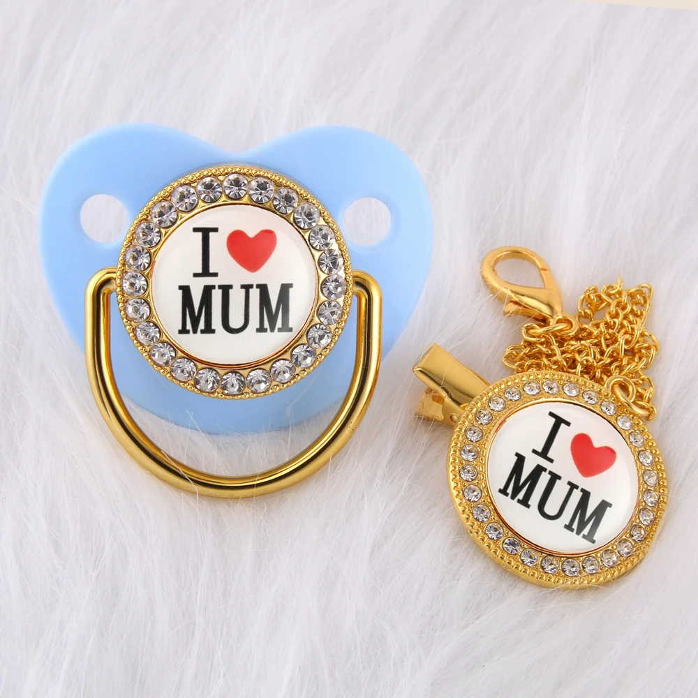 Роскошная розовая детская соска с цепочкой «сделай сам» I Love Mum уникальные стразы 0-18 месяцев Детские пустышки