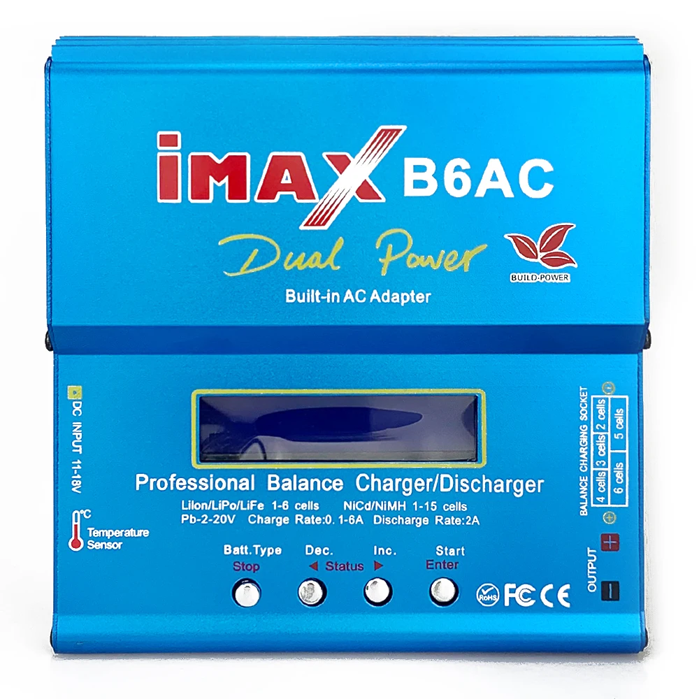 B6AC V2-высокопроизводительная микропроцессорная станция управления зарядкой/разрядкой с управлением батареей, подходящая для использования со всеми типами батарей, со встроенным эквалайзером для шестиэлементных литий-полимерных (LiPo ), литий-железных фосфатов (LiFe) и литий-ионных (LiIon) батарей; Максимальный ток заряда 6A и максимальная мощность заряда 50 Вт.