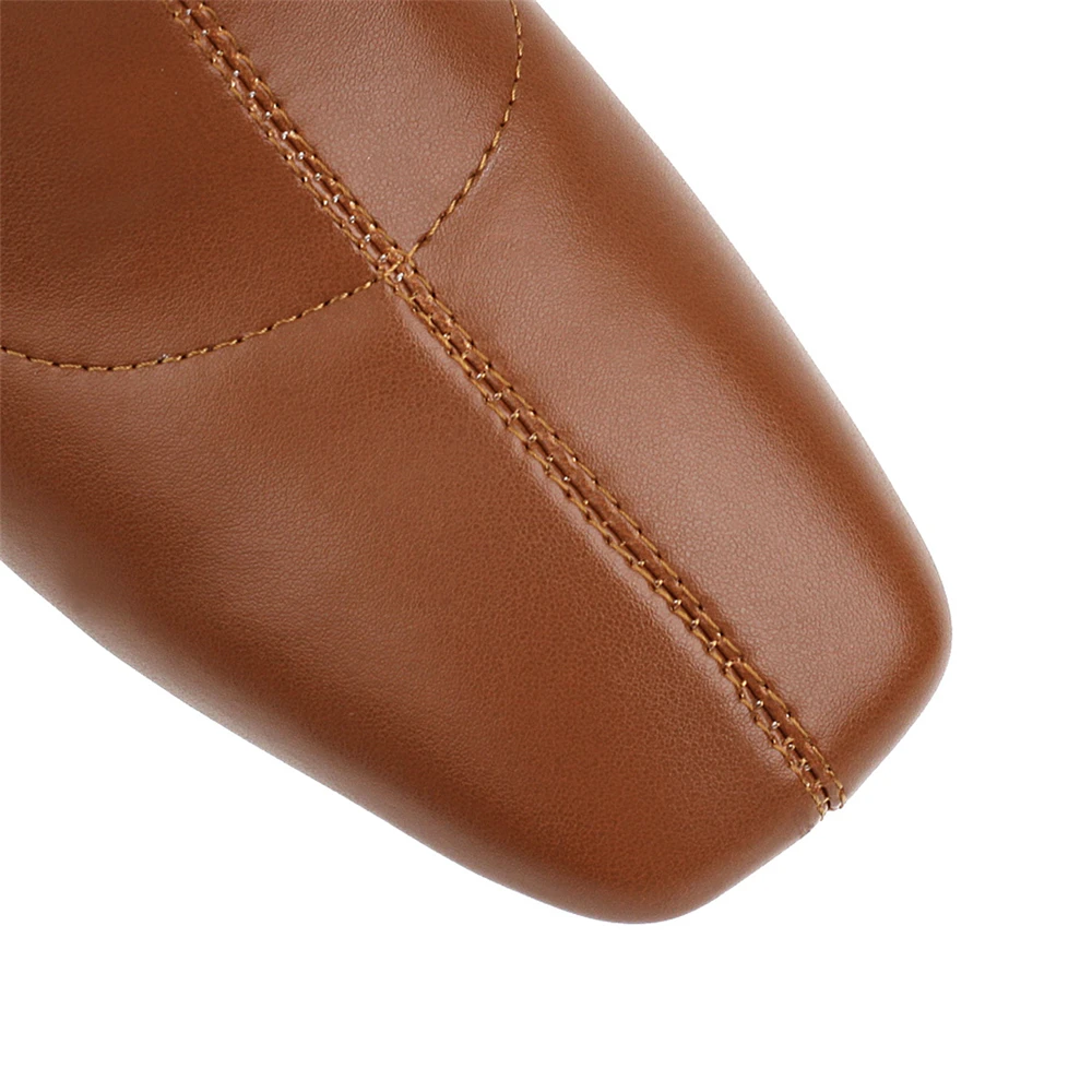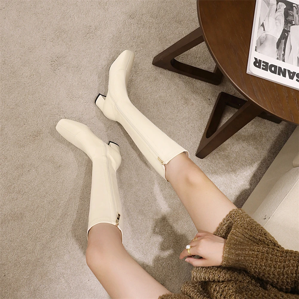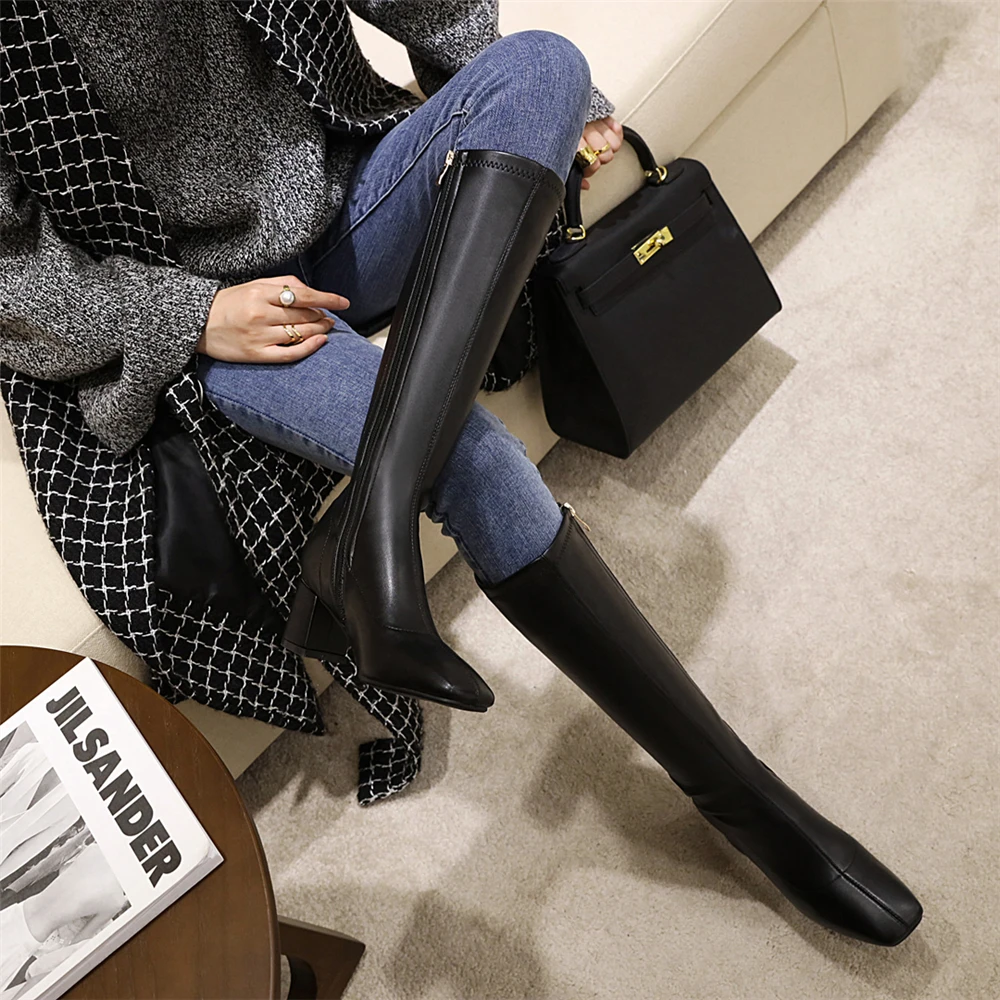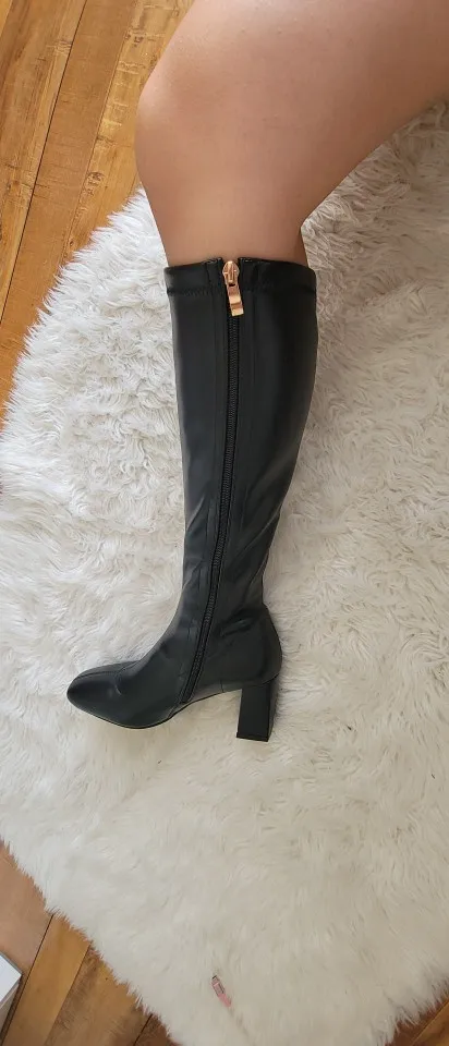 Женские сапоги до колена, классические сапоги из искусственной кожи на квадратном каблуке, вечерние молнии, вечернее платье, танцевальная обувь, женская обувь 31-43