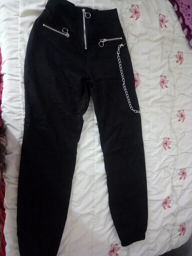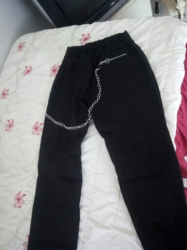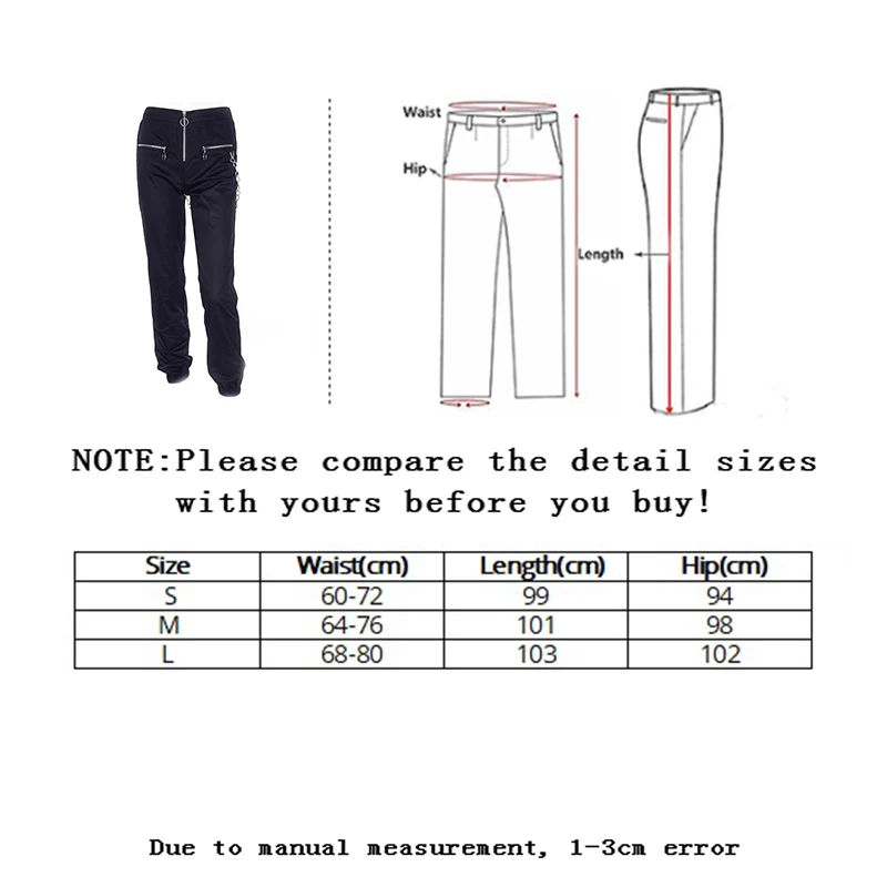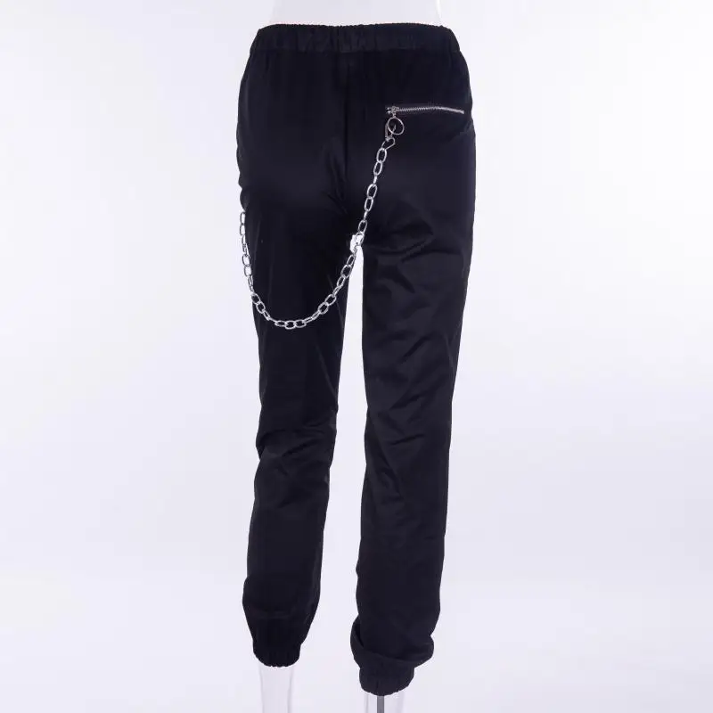 Женские шаровары с цепочкой, на молнии, черные, Осенние