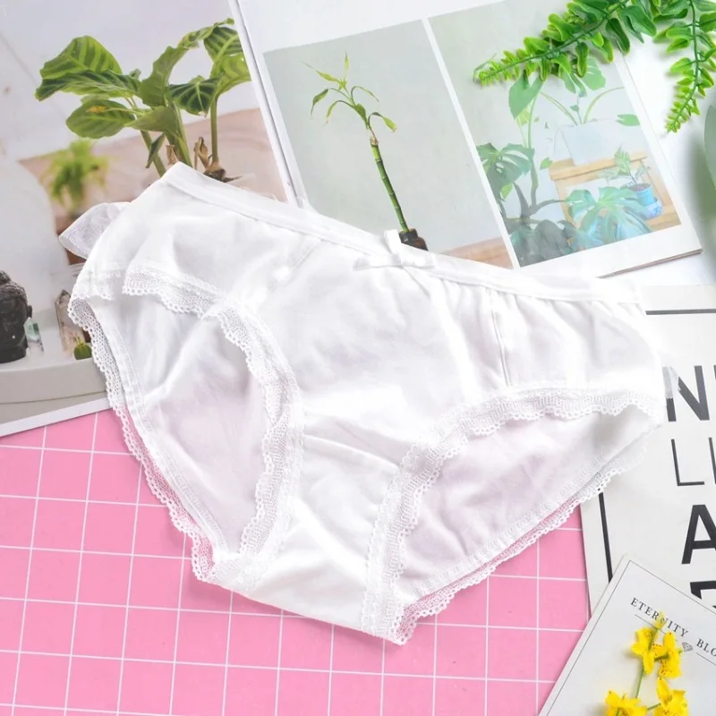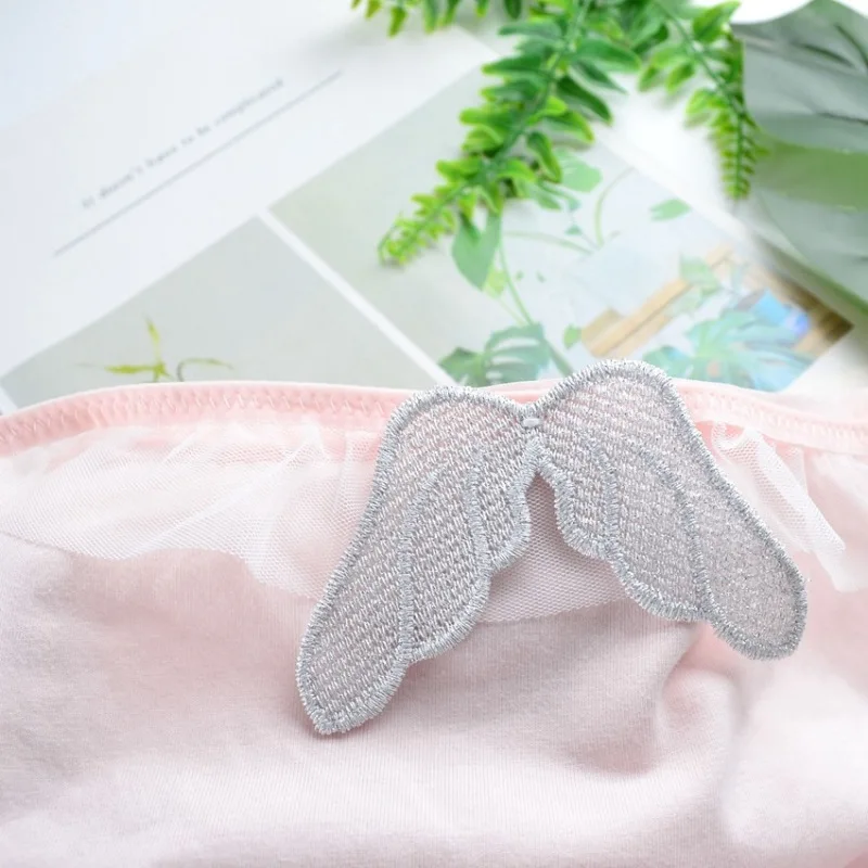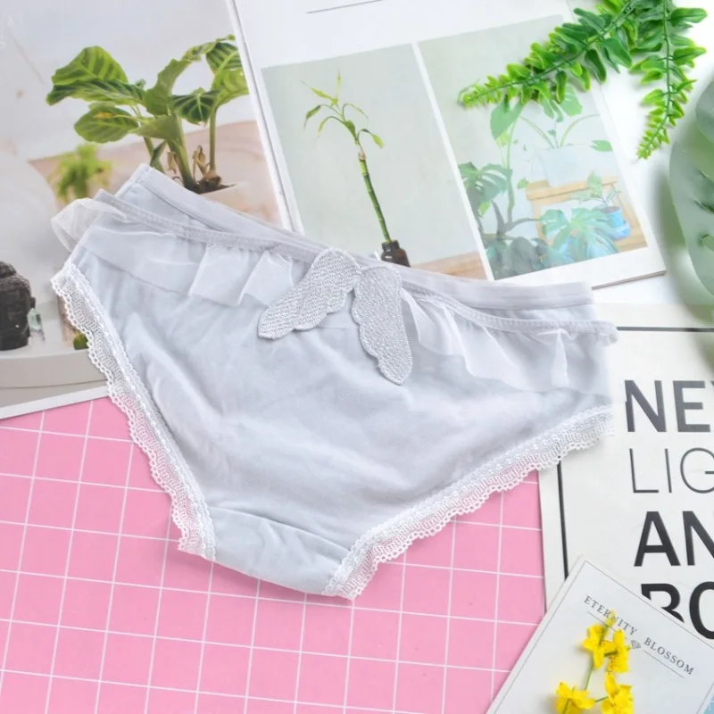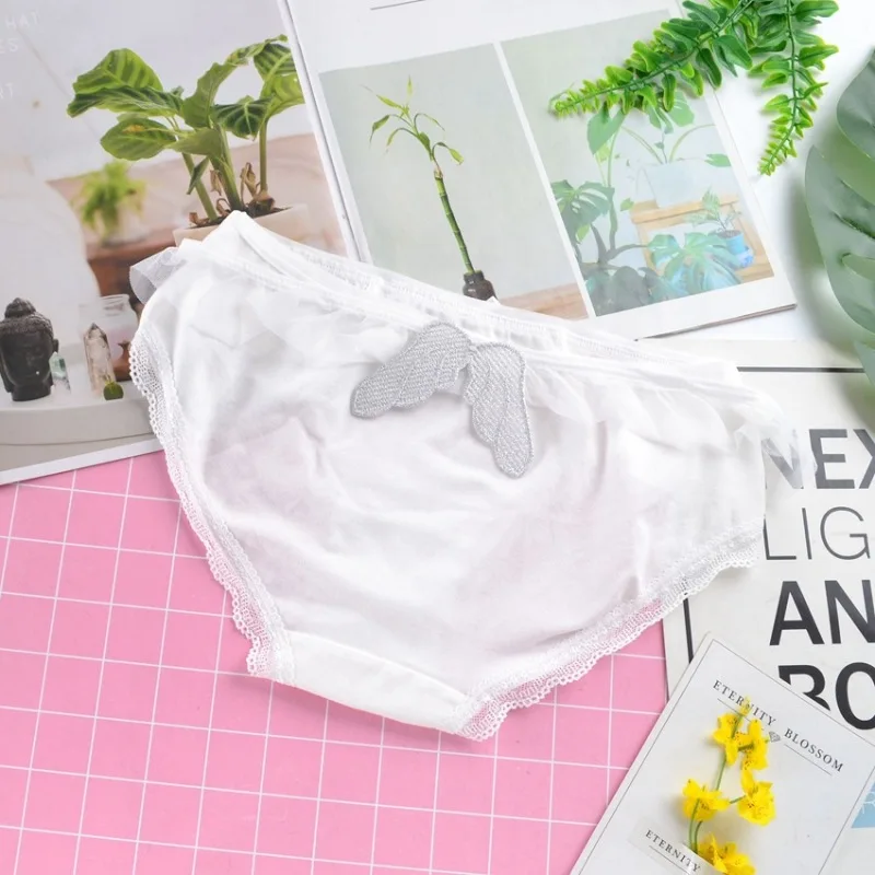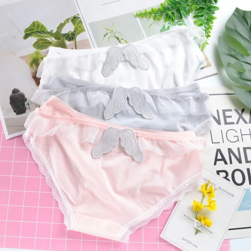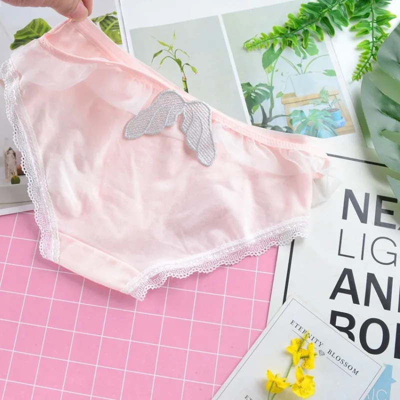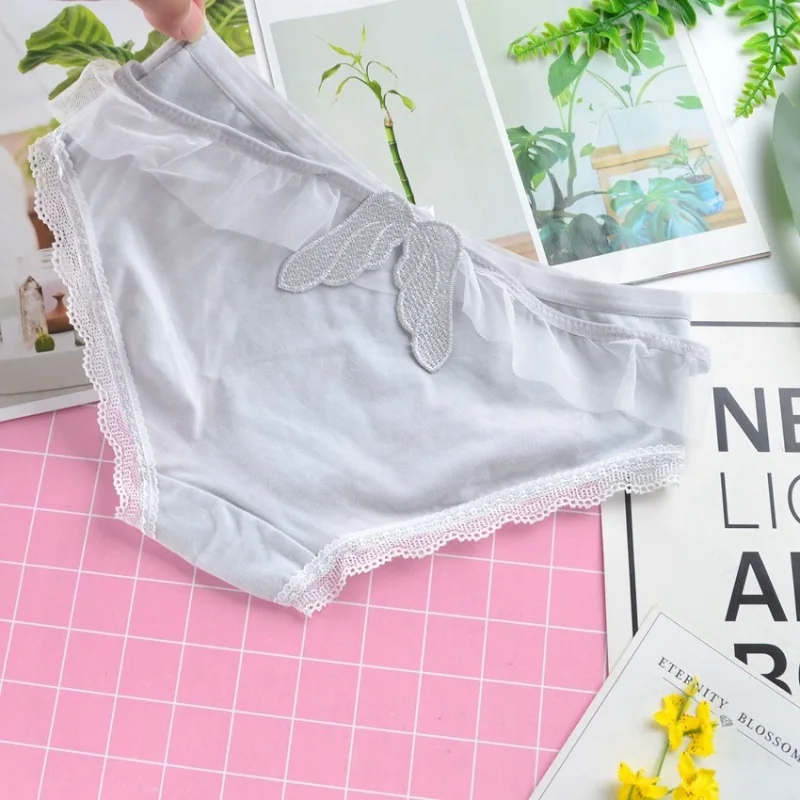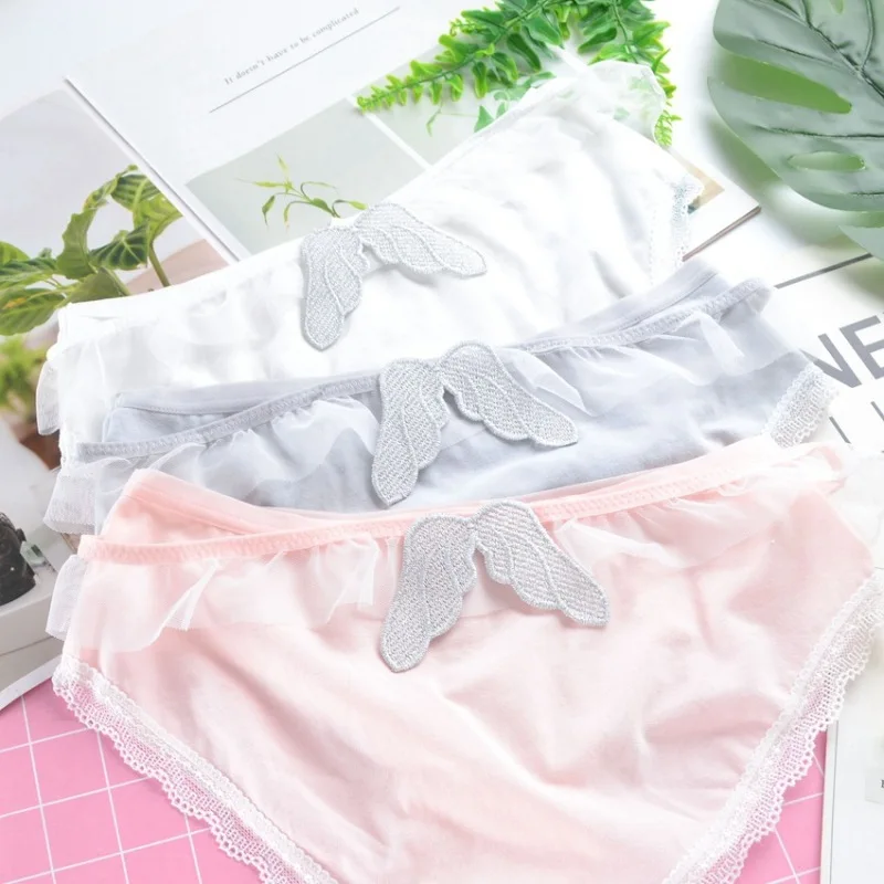 Женское нижнее белье в японском стиле, милое хлопковое нижнее белье с крыльями ангела, сексуальные кружевные трусики с оборками и низкой талией, дышащие женские трусики Breifs
