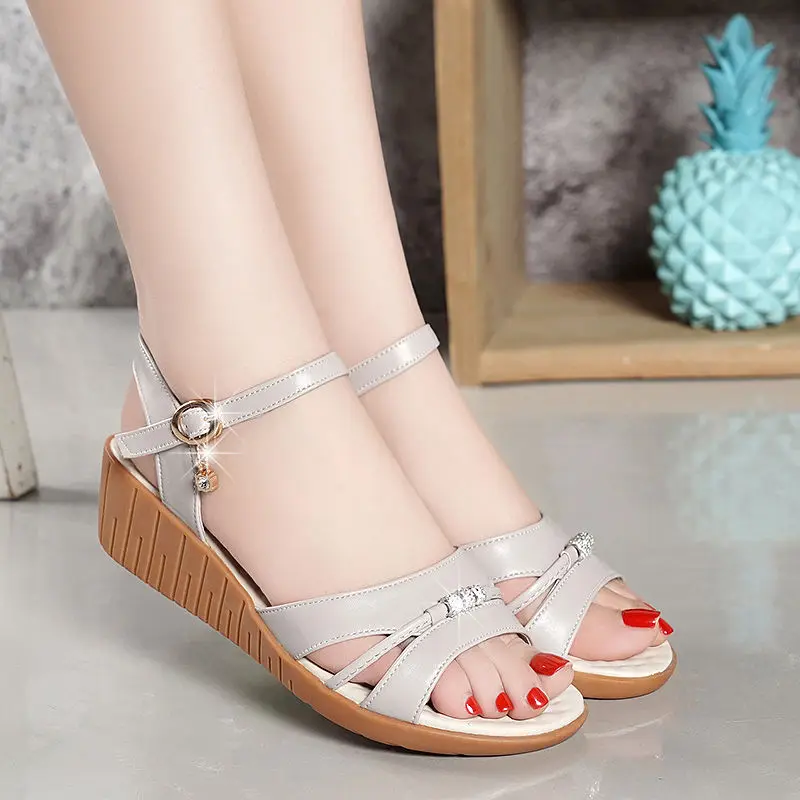 Сандалии женские на танкетке, удобные босоножки на среднем каблуке, повседневная обувь с открытым носком для матерей, лето 2020