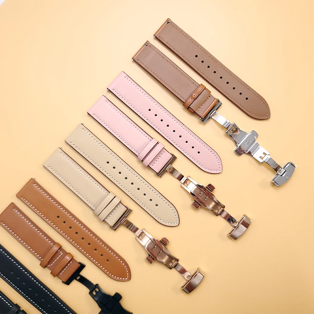 Ремешок для Samsung Galaxy Watch 4, с пряжкой-бабочкой, кожаный, 44...