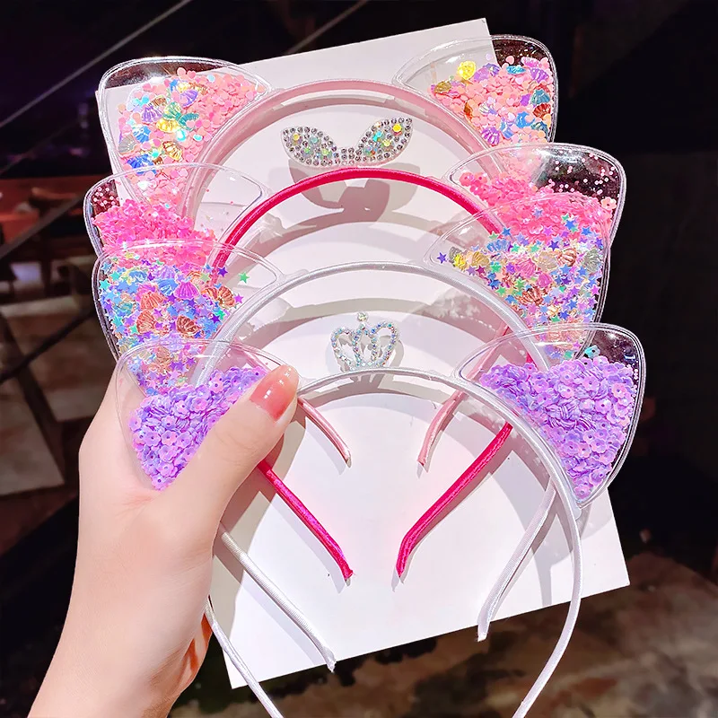 Милая повязка на голову с кошачьими ушками для девочек и малышей корейская детская повязка на голову с зыбучим песком кошачьи уши Фея Принцесса аксессуары для волос для женщин