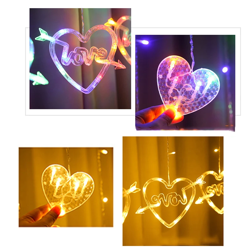 2,5 м 138LED Европейский заглушка в форме сердца занавес светильник сказочная гирлянда Рождественская гирлянда светильник s для рождественские вечерние свадебные украшения лампа