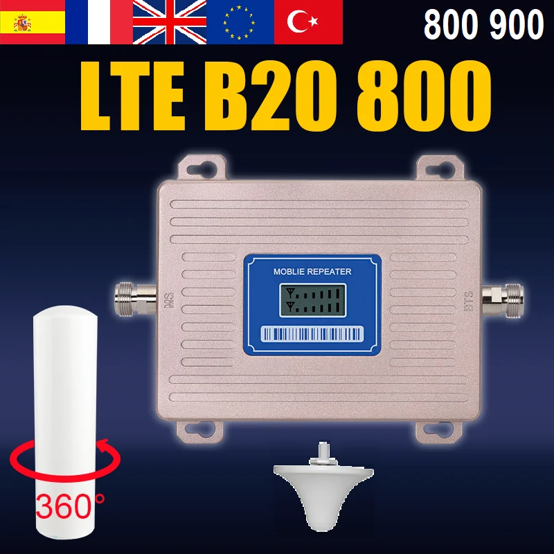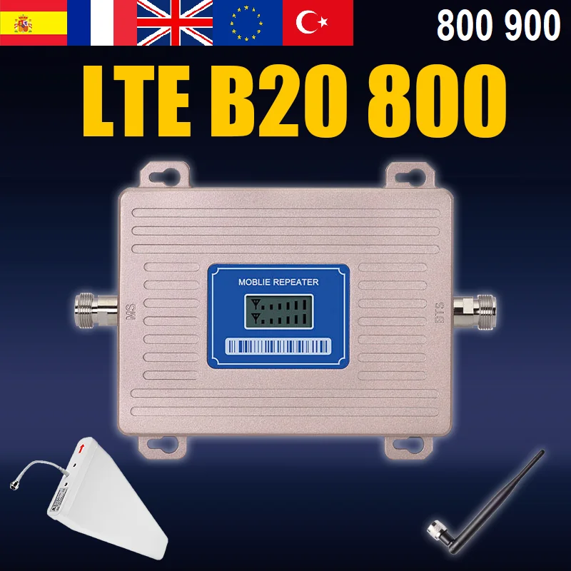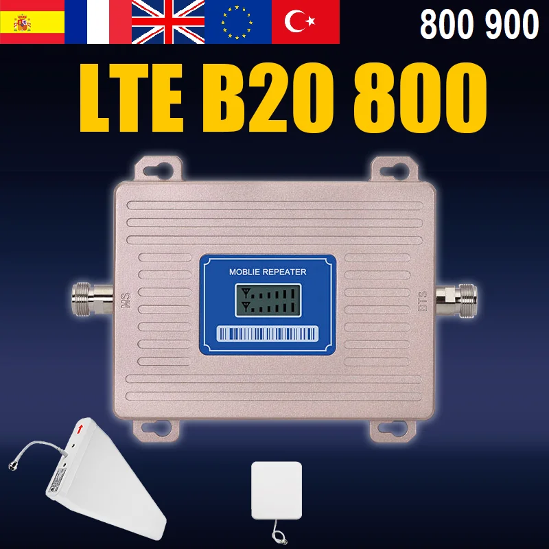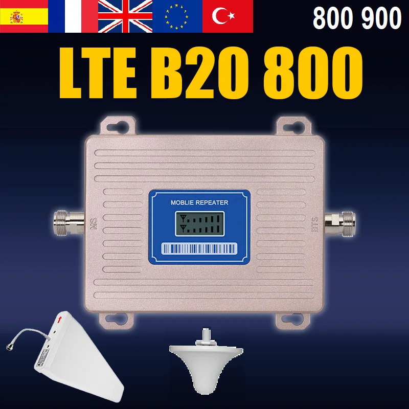 Двухдиапазонный ретранслятор сотового сигнала LTE 800 Band 20 4G и GSM UMTS 900 МГц Band 8 2G 3G усилитель сигнала, мобильный усилитель, Европа