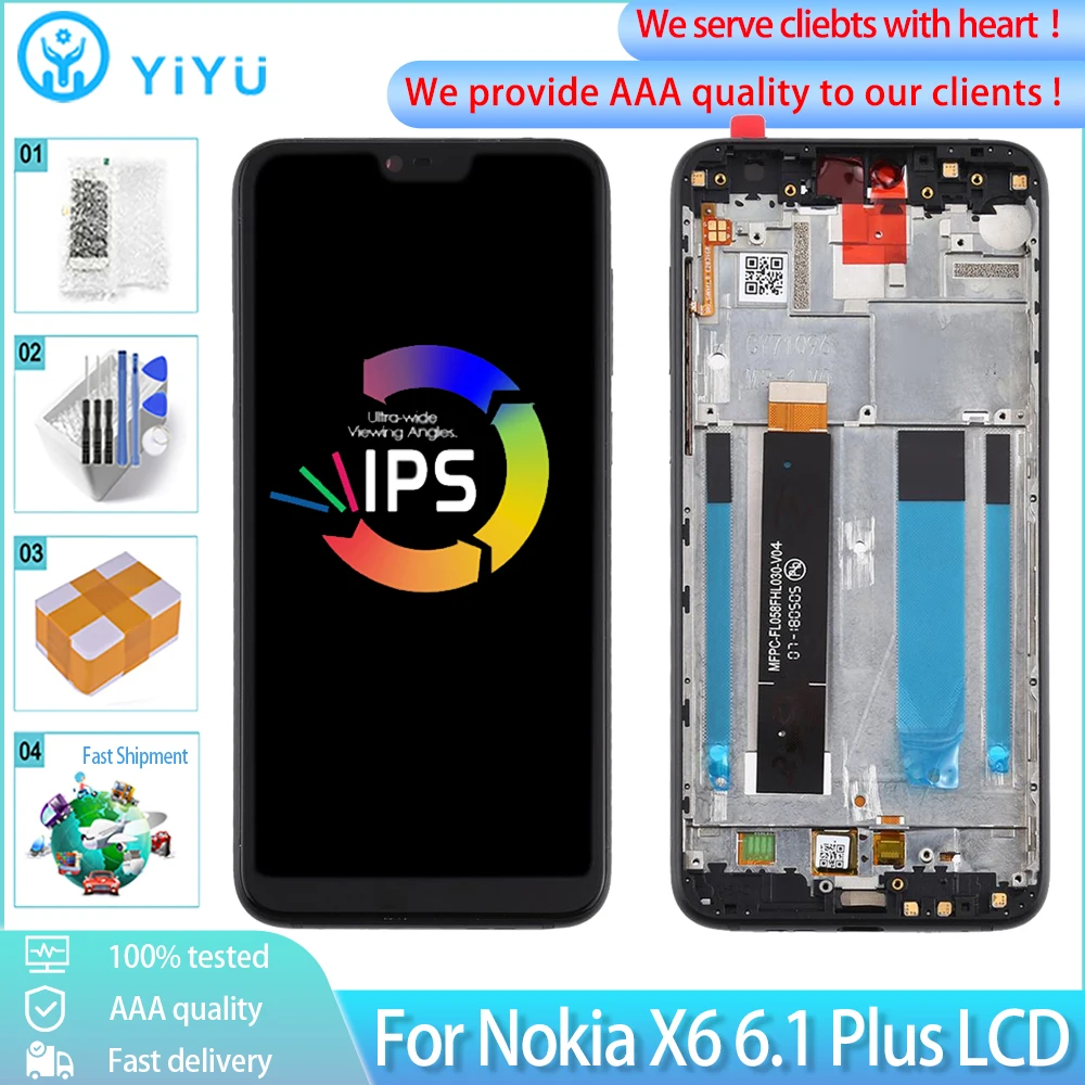 5,8 "Оригинальный IPS ЖК-дисплей для Nokia X6 6,1 плюс Дисплей сенсорный Экран Digitizer Замена Модуль для Nokia X6 ЖК-дисплей с рамкой