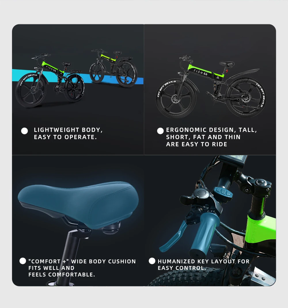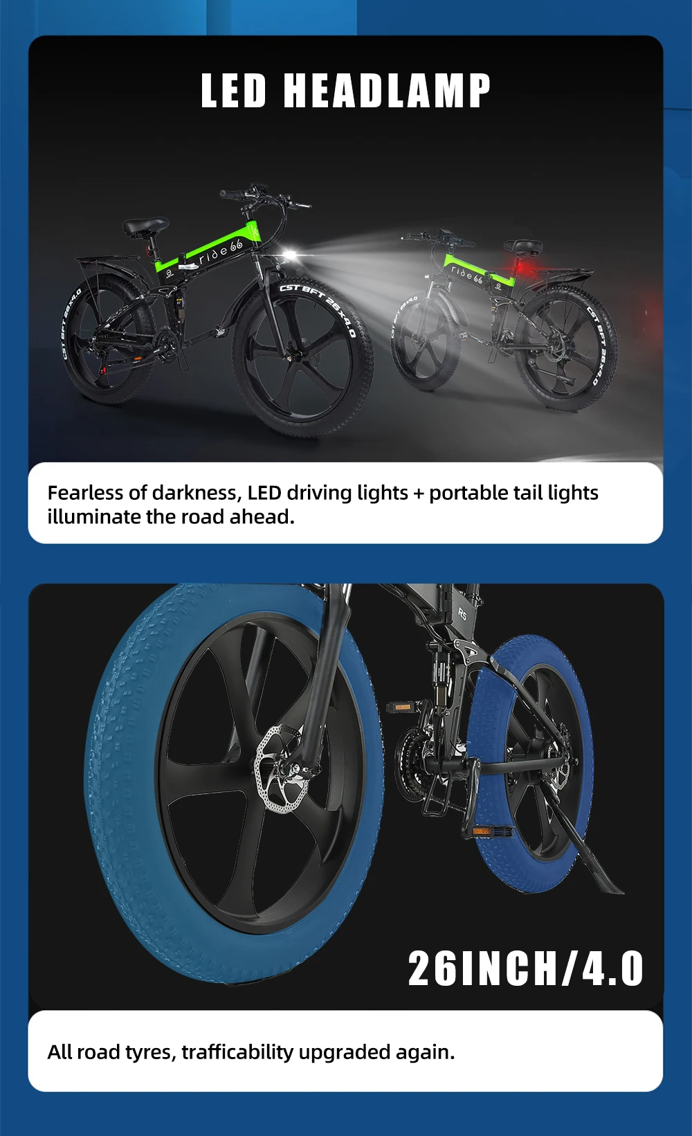 Велосипед электрический складной, 48 В, 1000 Вт, 26 дюймов, с толст...