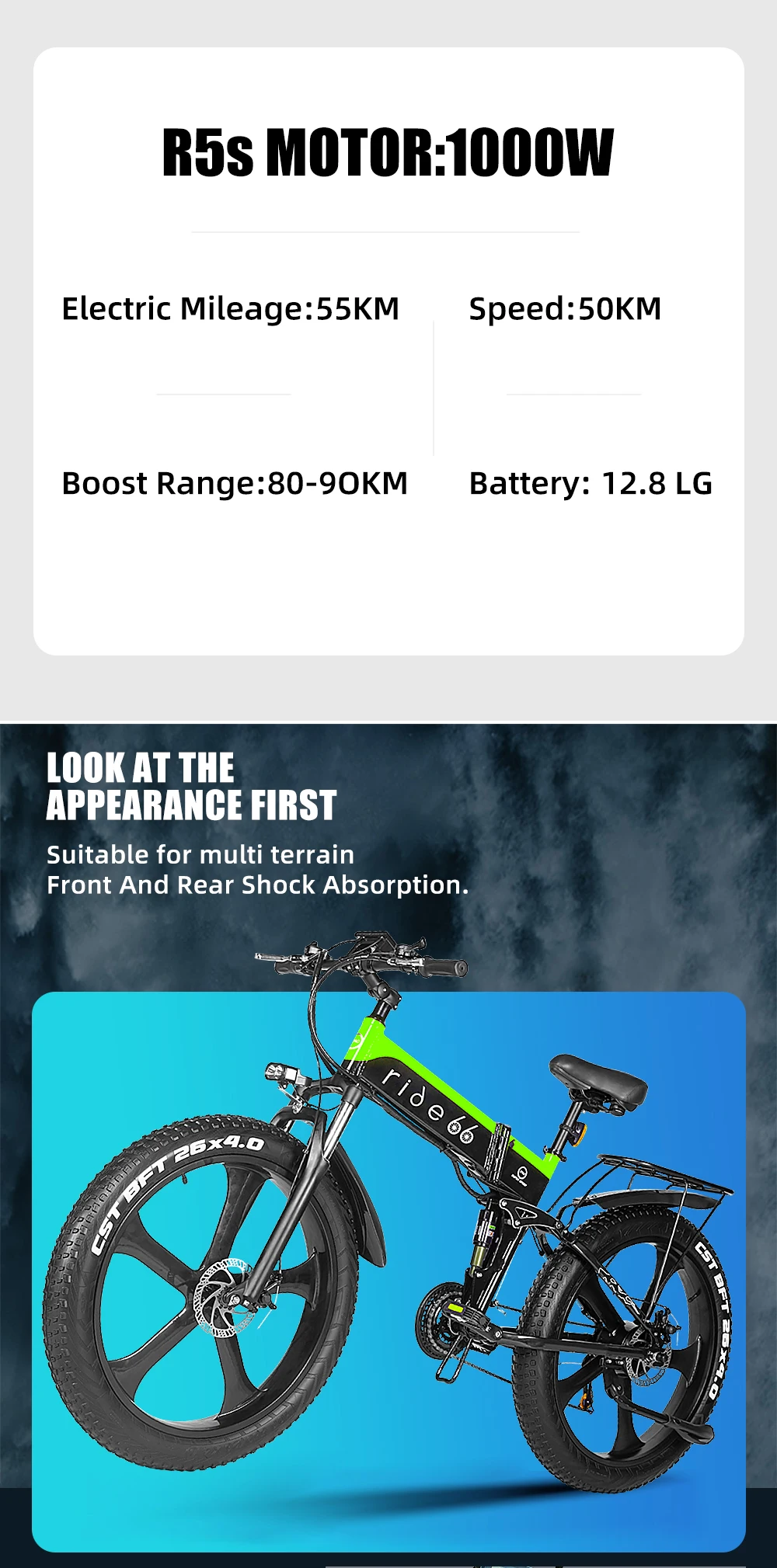 Электрический велосипед, 1000 Вт, 48 В, 26 дюймов, с толстыми шинами
