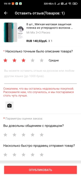 Mi 9 Lite Заказывал уже раньше такую плёнку,отлично защищает от потёртостей и царапин... Советую тем кто позднее собирается перепродавать своё устройство. Спасибо продавцу,доставка 15 дней.