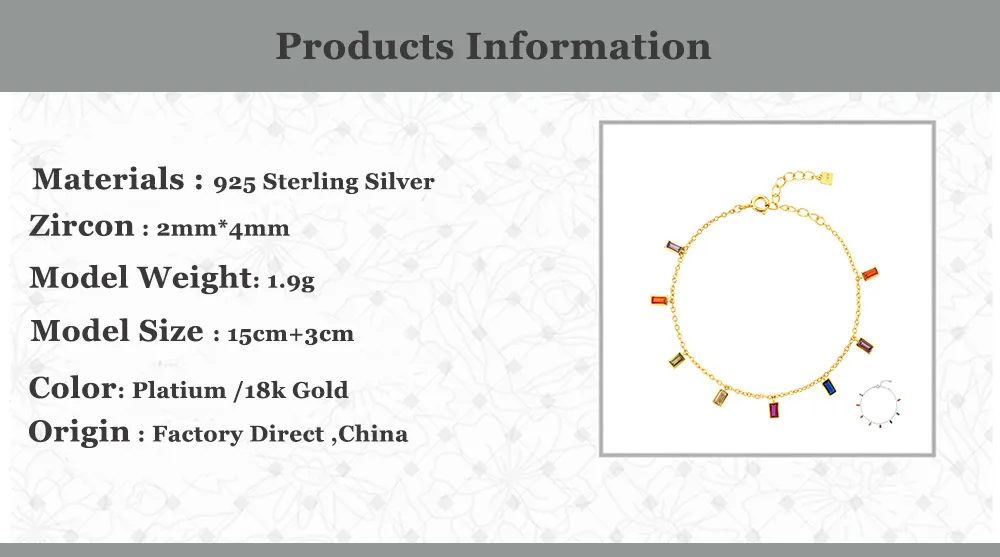 Женский браслет из серебра 925 пробы, с радужной цепочкой