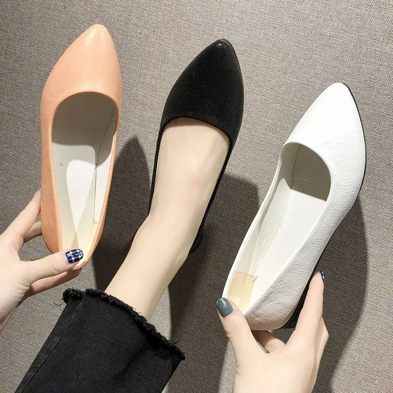 Туфли женские с мягкой подошвой, заостренный носок, низкий каблук, удобные, для медсестер, обувь для работы, белые