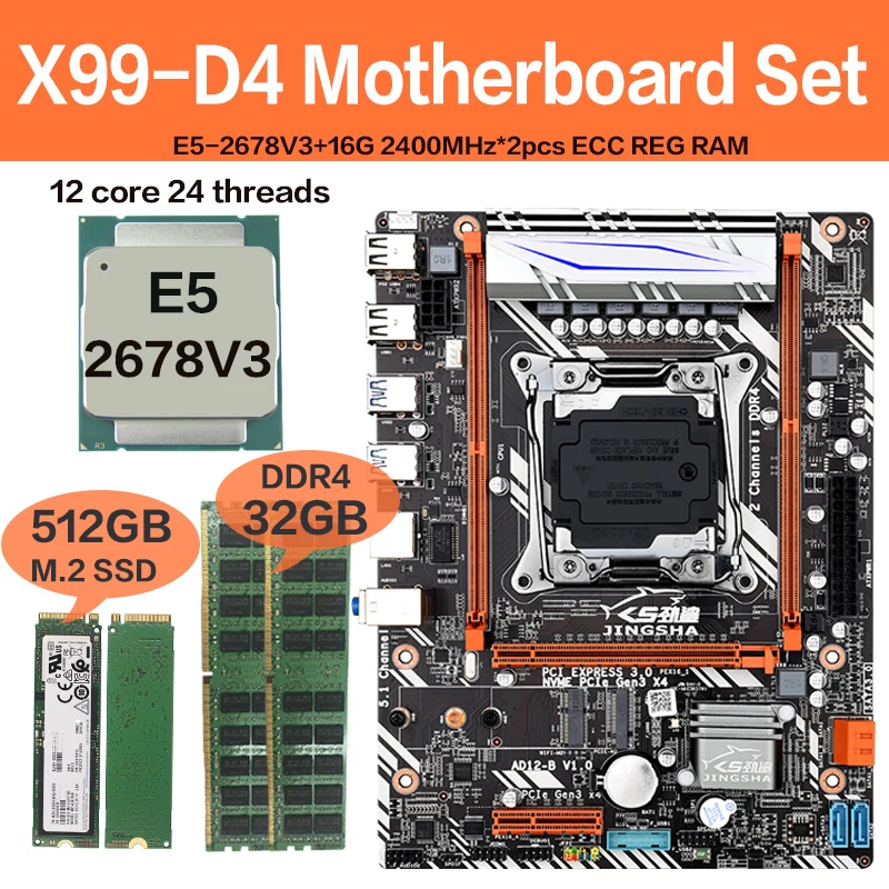 Процессор JINGSHA X99 placa base combo с процессором Xeon E5 2678 V3 LGA2011-3, 2 uds X 16 ГБ = 32 Гб 2400 МГц DDR4 с SSD M.2 512 ГБ