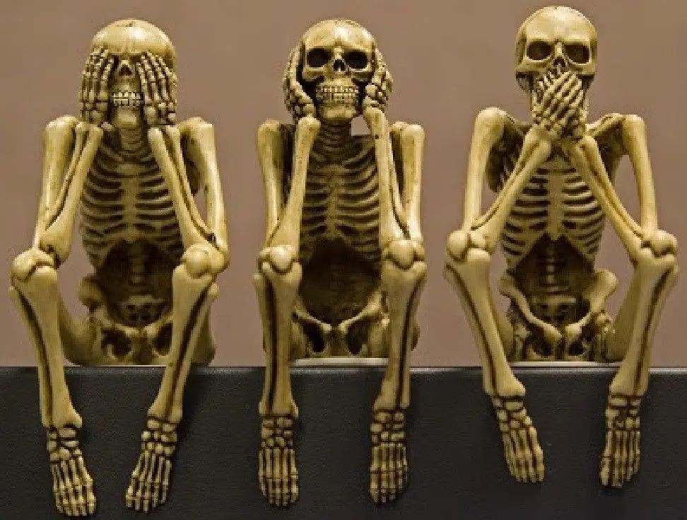 3 парня, скелет, забавный, слушайте, не зло, фото, шелковая фотография, 24x36 дюймов