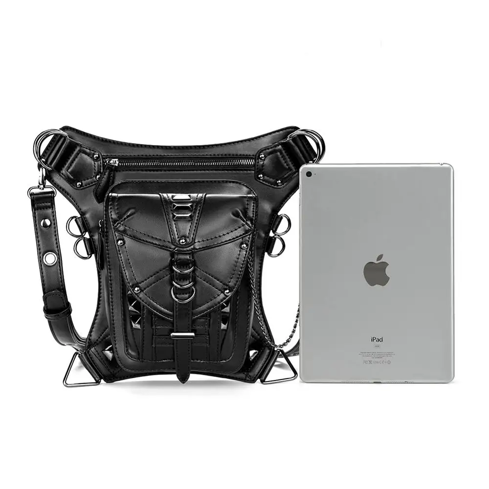 Кожаные поясные сумки унисекс в готическом стиле, забавные мотоциклетные мужские и женские сумки с прямыми штанинами, мессенджеры через плечо с заклепками