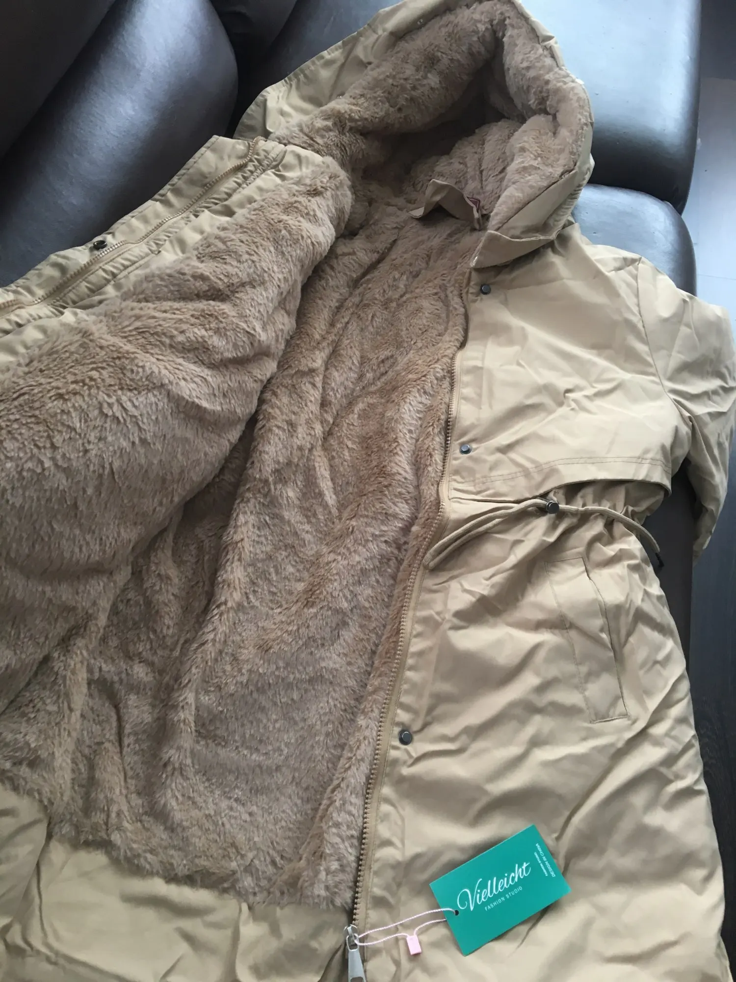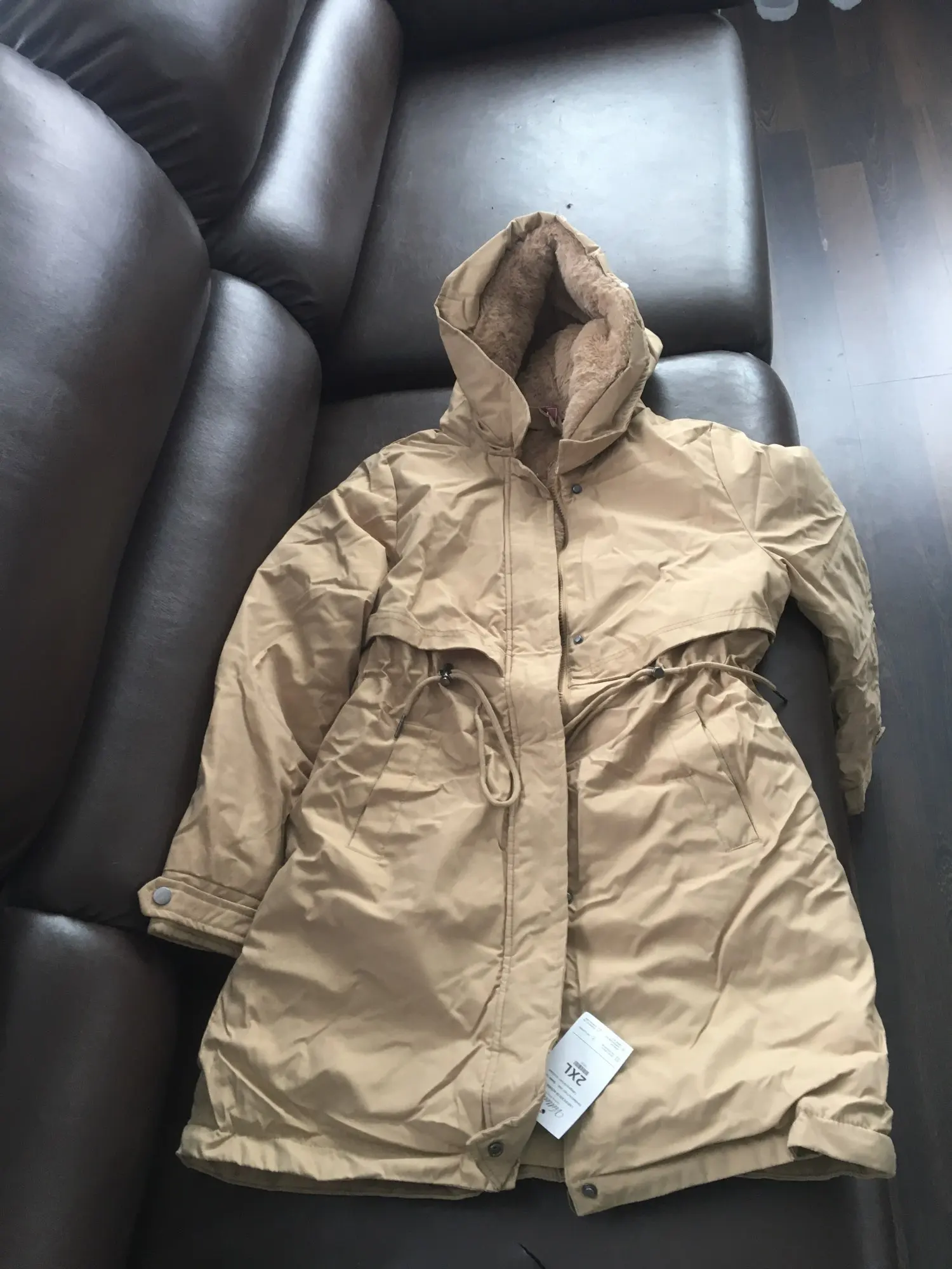 Куртка отличная. Заказала 4хл на мой 52 размер. Но вот мех пришёл в пятнах и сильно лезет с каким-то клеем. Петелек не хватает, и пуговицы некоторые отсутствуют. Открыла спор и обещали вернуть часть денег. Поэтому я всё же ставлю 5 звёзд. Буду покупать другой воротник отдельно. Доставка очень быстрая.