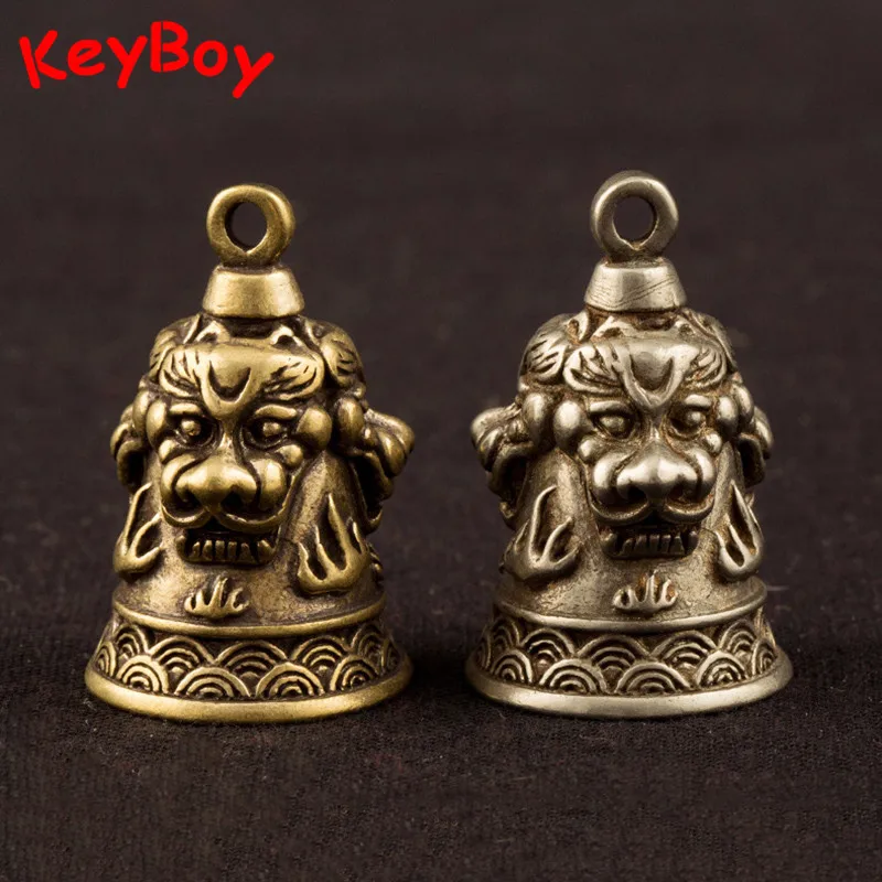 Винтажный Колокольчик для рождественской елки, висящий три Льва, чистый Латунный Колокольчик Exorcism Feng Shui, кулон-брелок для автомобиля, ювелирные изделия, мужской брелок