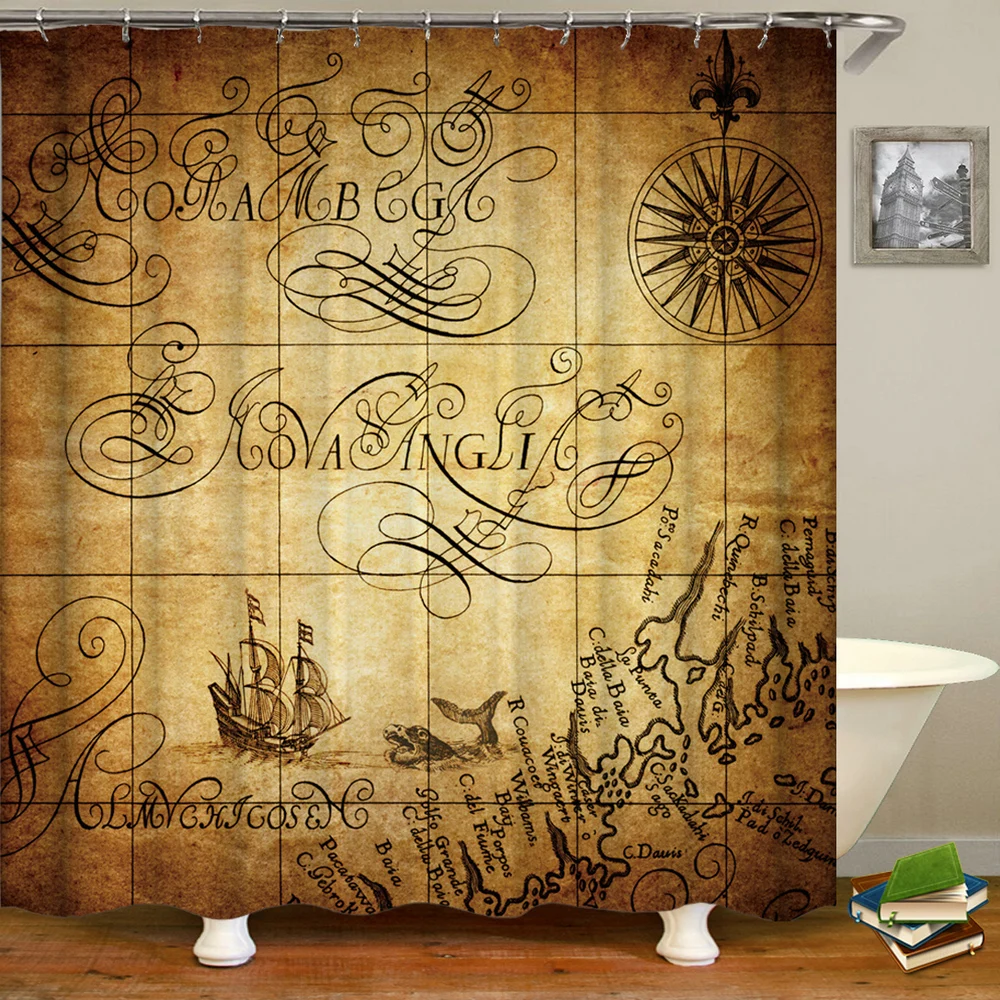 Занавеска для ванной в винтажном стиле, тканевая Водонепроницаемая ...