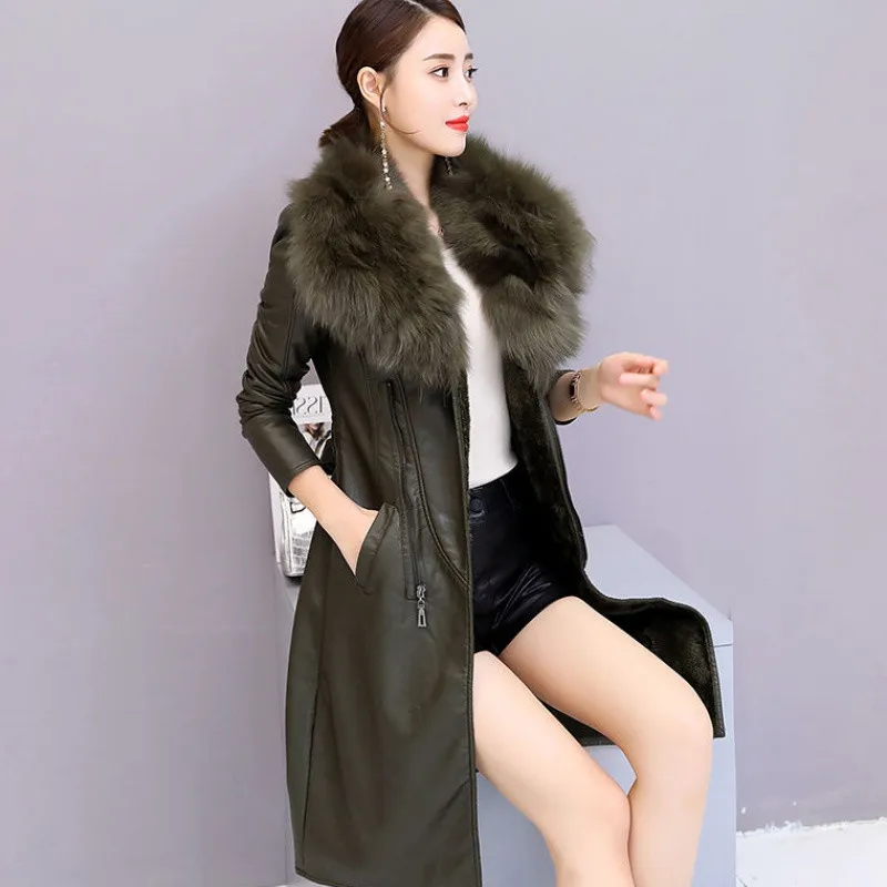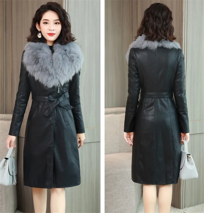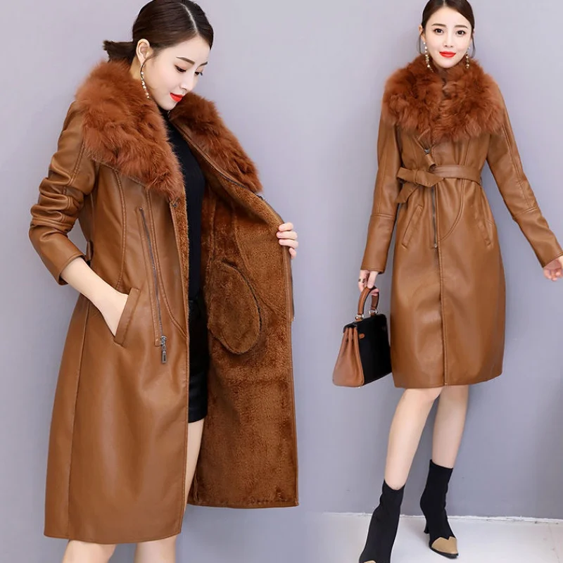 Куртка женская длинная из искусственной кожи, свободная Ветровка из искусственной кожи, верхняя одежда, размера плюс, P972, осень 2020