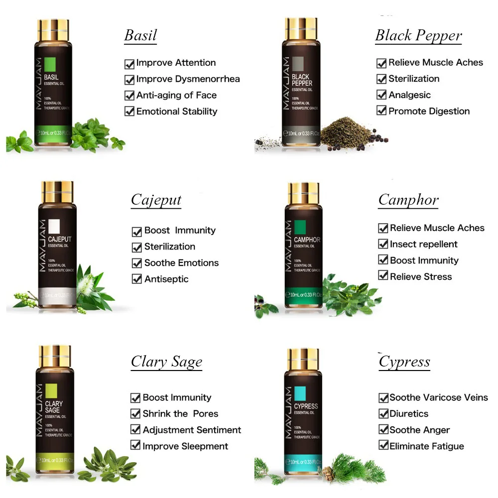 Эфирное Масло Базилика камфоры, 10 мл, перец для массажа тела, фенхель, шалфей, имбирь, иголки для Мирры, сосны, тимьян, ветивер, ароматическое масло