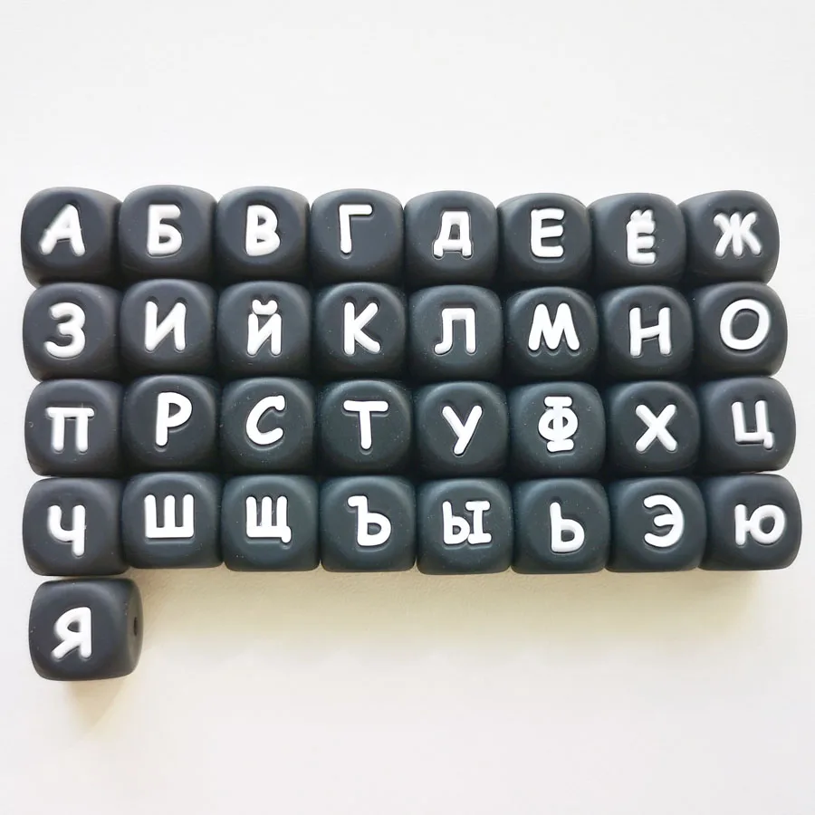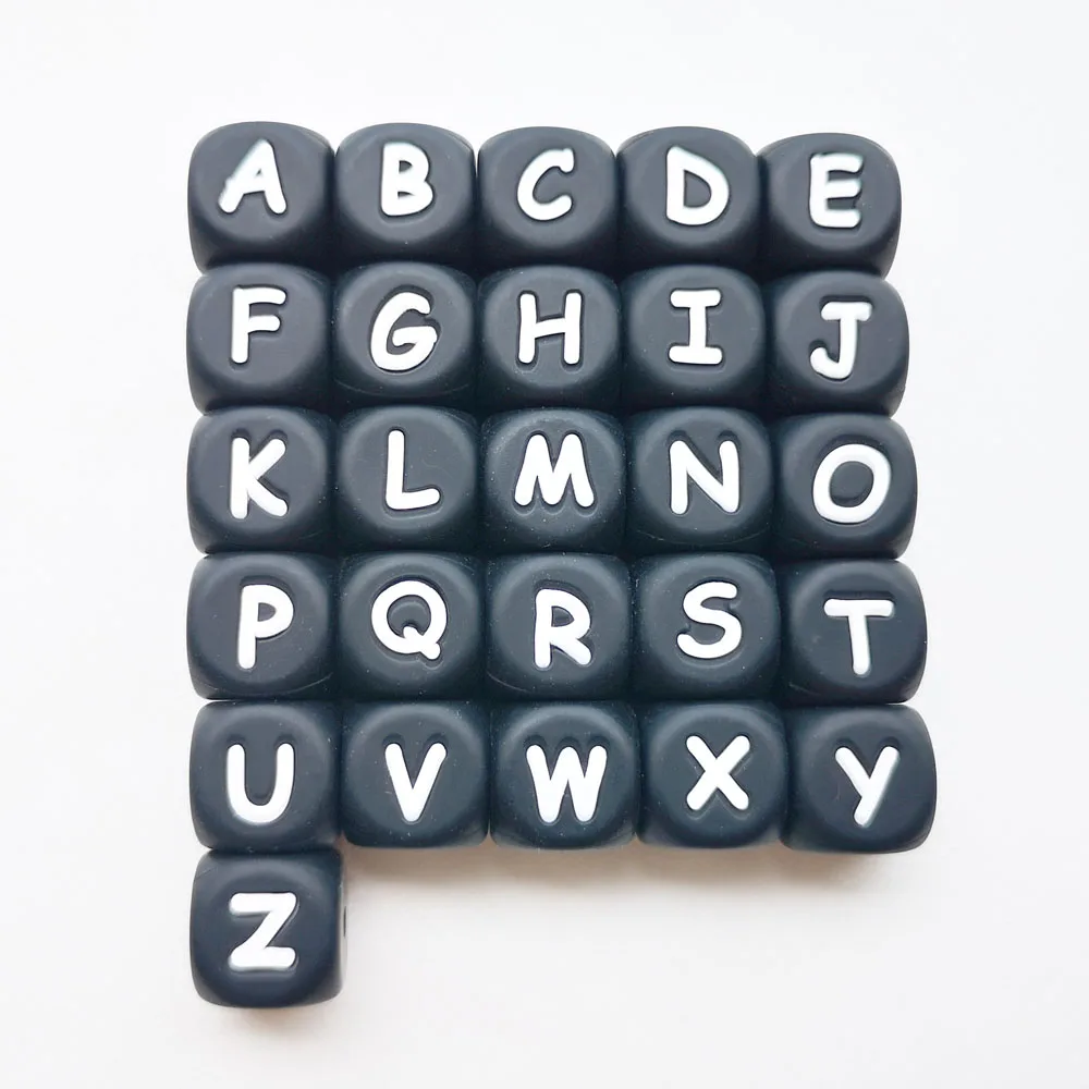 100 шт. детские игрушки для прорезывания зубов Силиконовые бусы черный куб русские бусы с алфавитом 12 мм английская буква Прорезыватель DIY ожерелье цепочка для соски