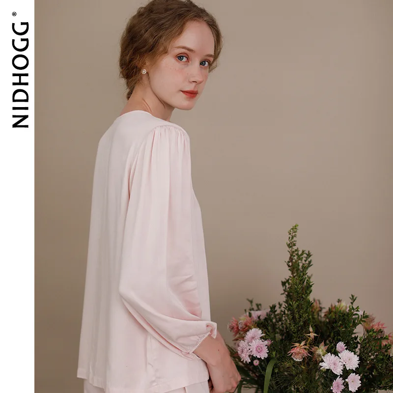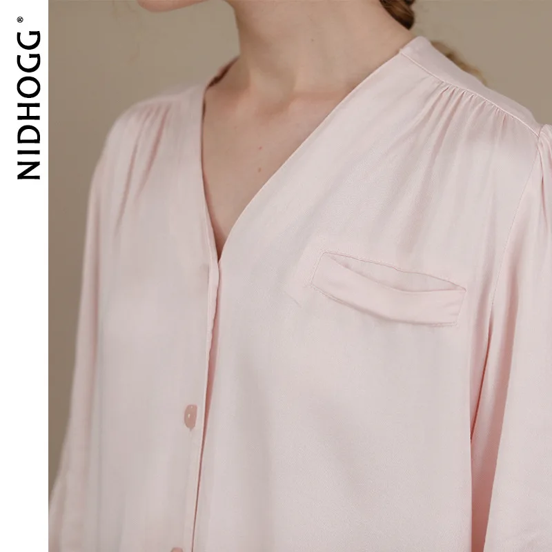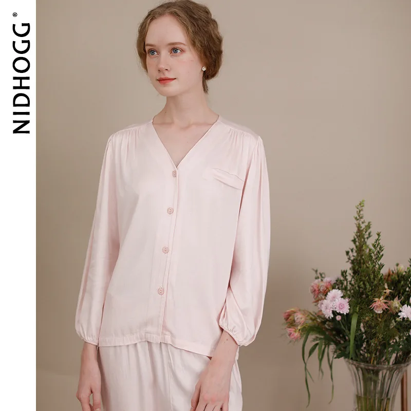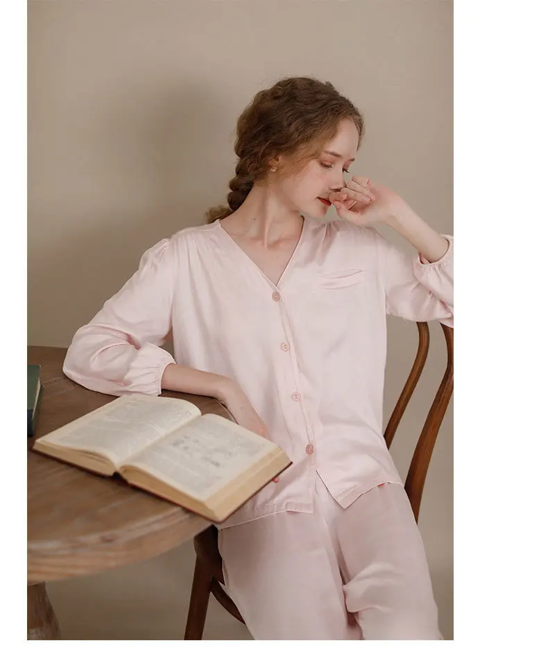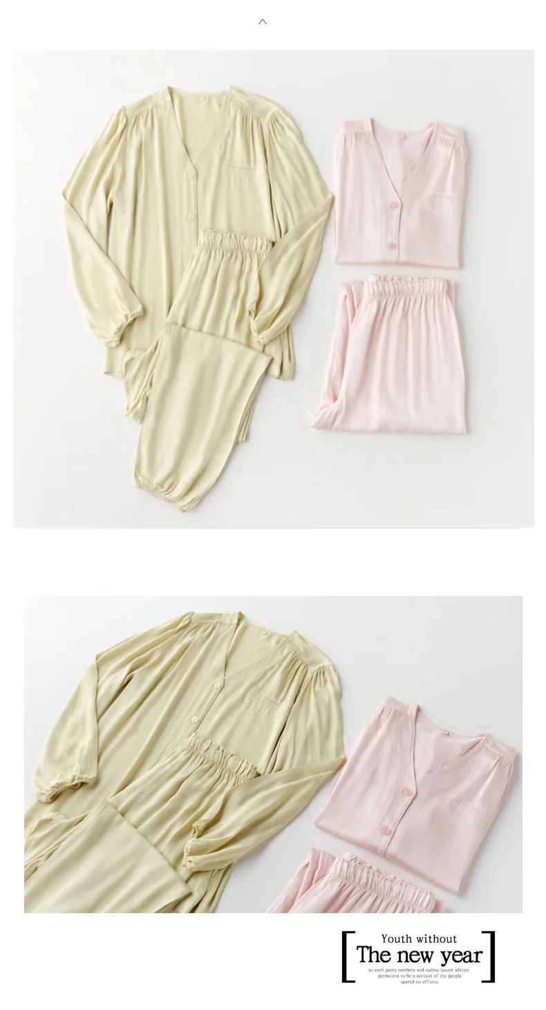 Осенняя атласная свежая Пижама, Женские однотонные штаны с V-образным вырезом и длинным рукавом, пижама с V-образным вырезом, пикантная Пижама, Женская одежда из 2 предметов