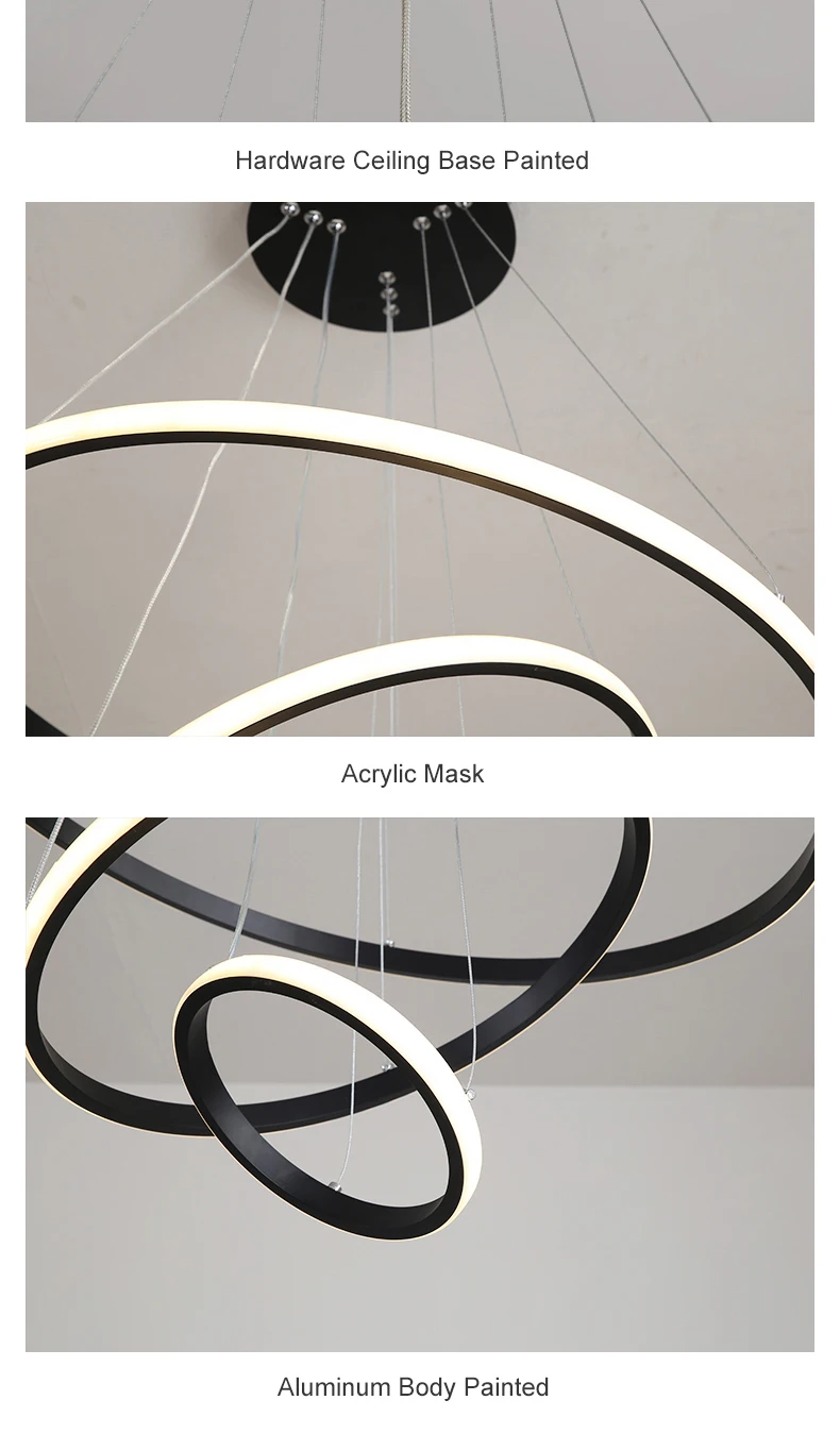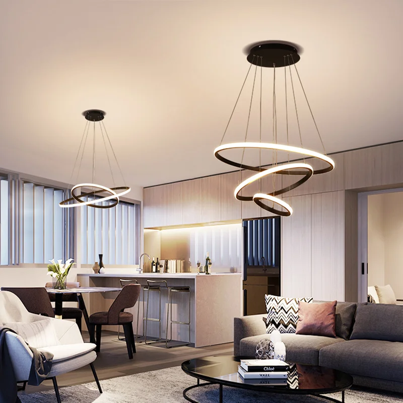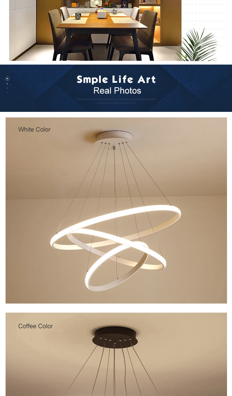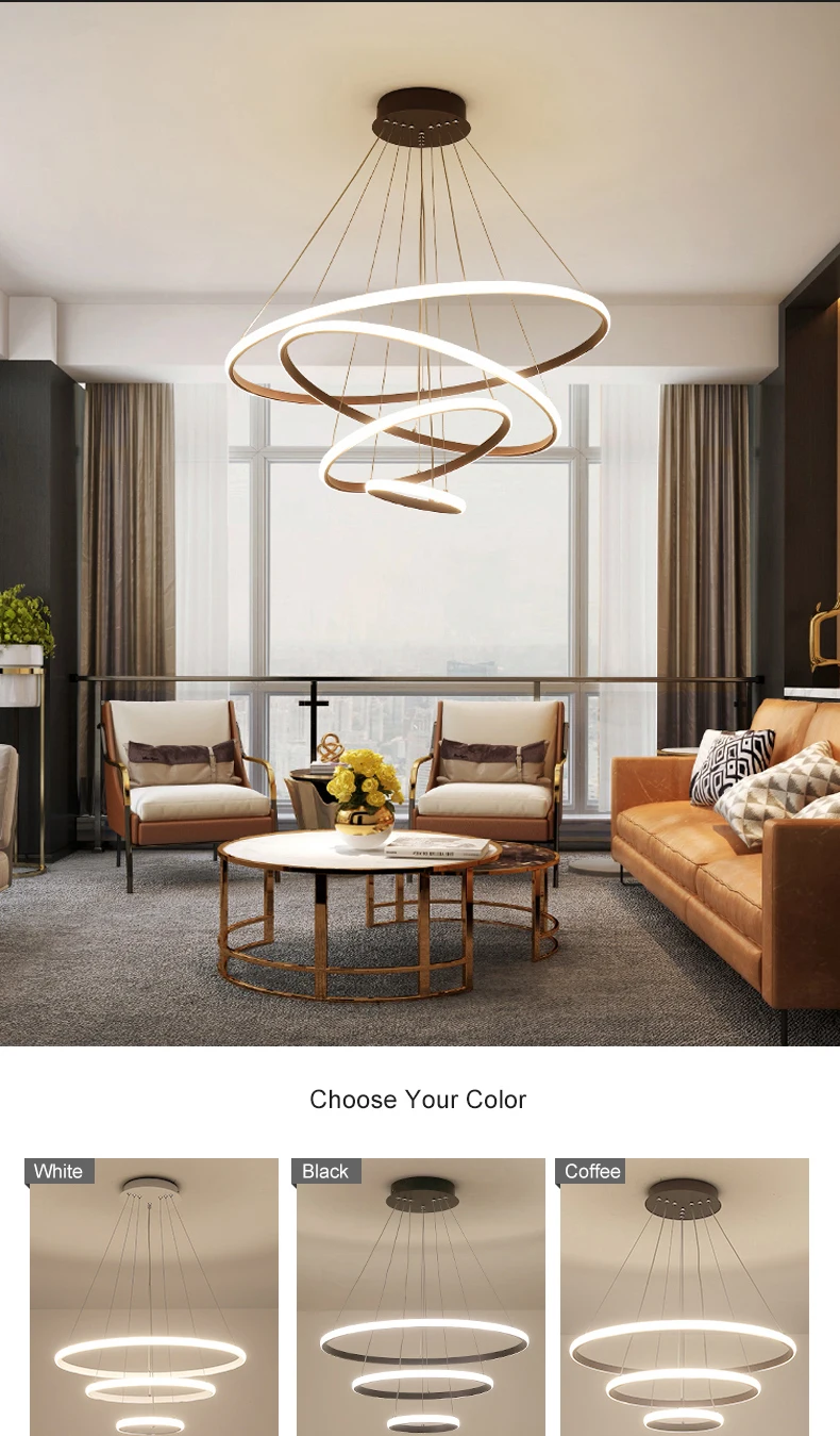 Современные светодиодные подвесные светильники черногобелогокофейного цвета для гостиной, столовой, круглые кольца, алюминиевые подвесные светильники, осветительные приборы