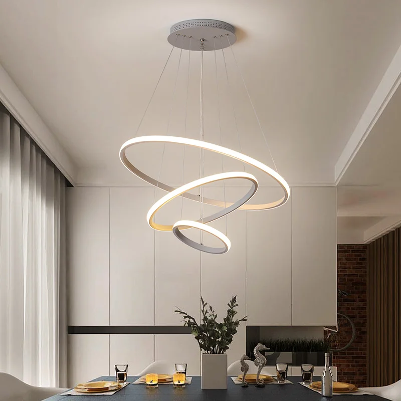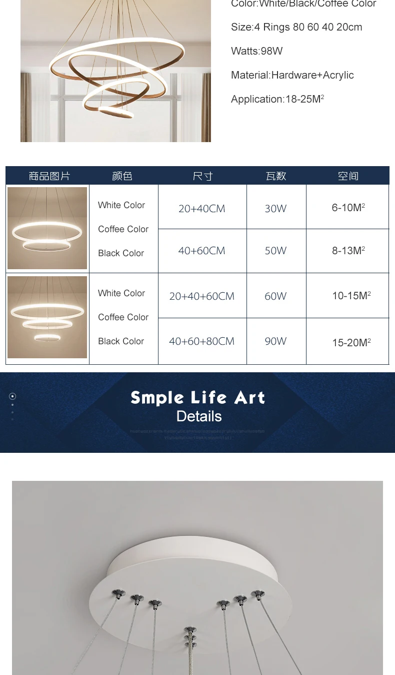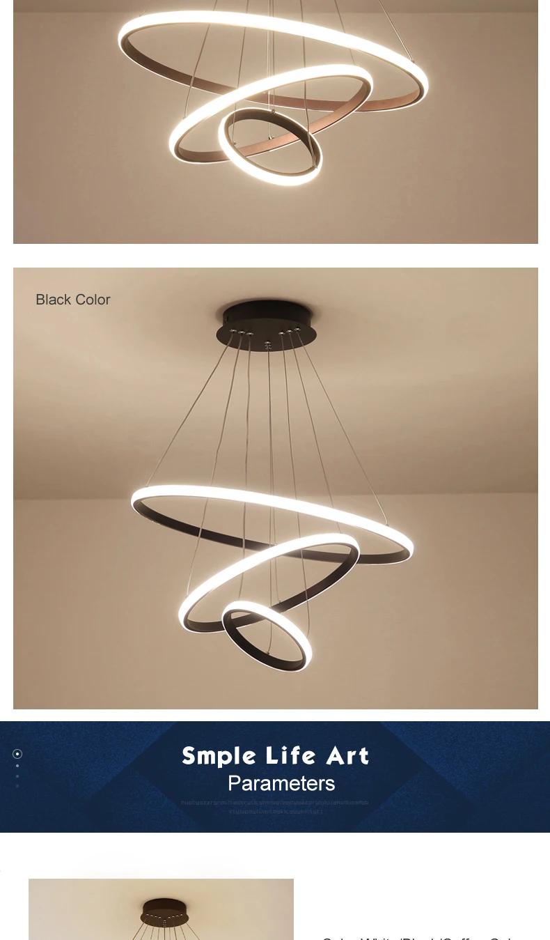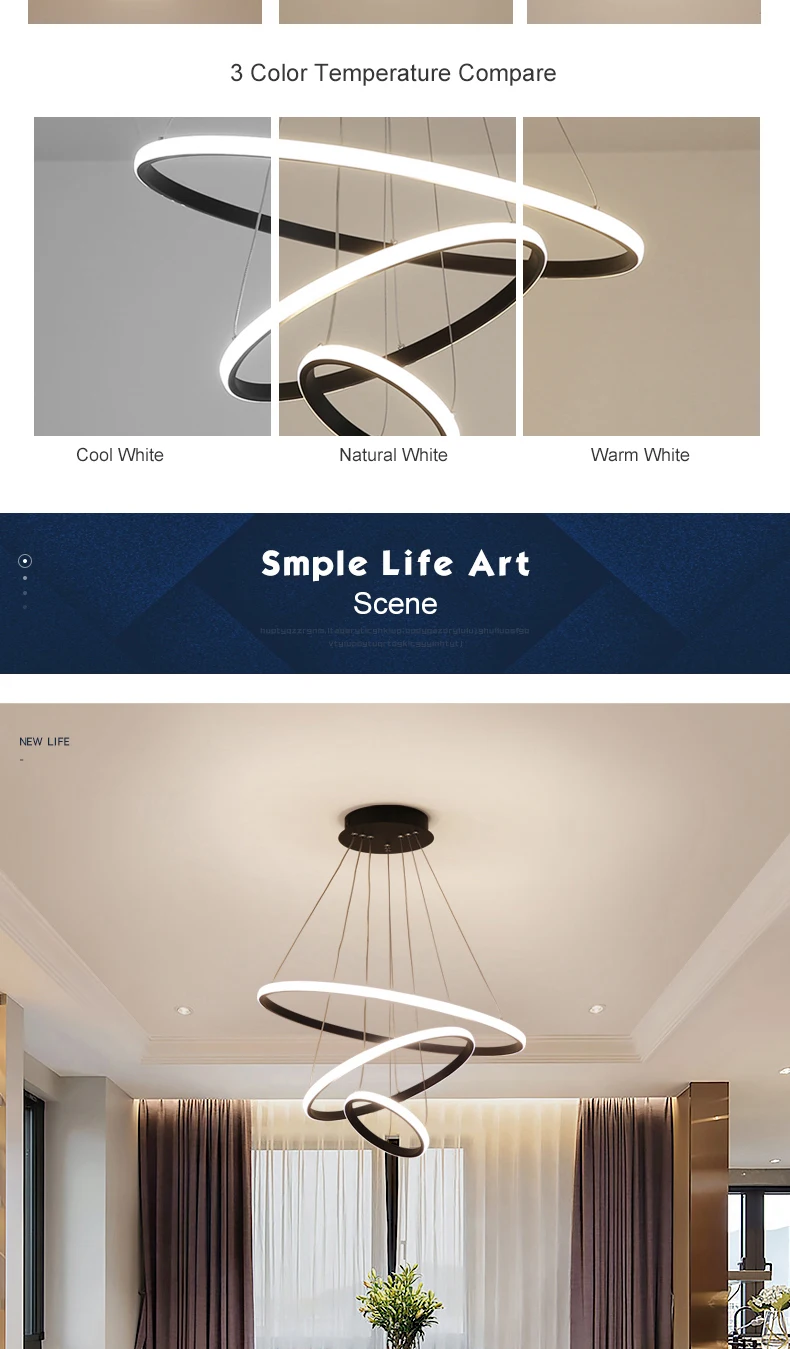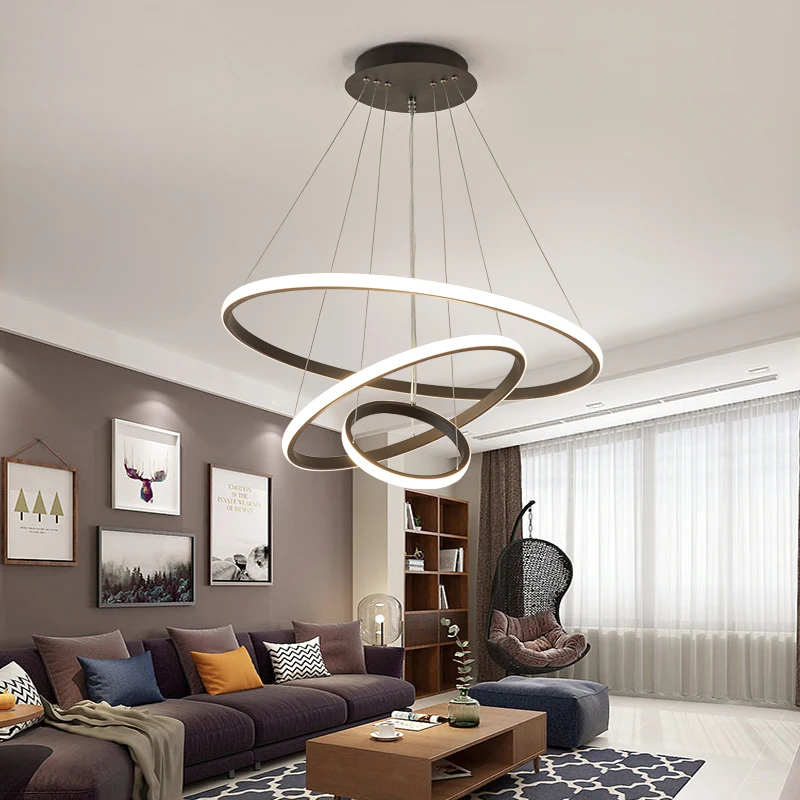 Современные светодиодные подвесные светильники черногобелогокофейного цвета для гостиной, столовой, круглые кольца, алюминиевые подвесные светильники, осветительные приборы