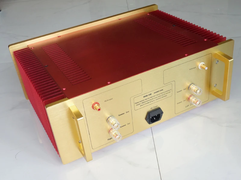 Радиатор: 300 мм x 140 мм x 50 ммТолщина пластины: 12 мм для передней панели, 10 мм для задней панели, 4 мм для верхней и нижней крышкиАксессуары: в общей сложности 4 передних и задних ручки, 4 ножки из алюминиевого сплава, 2 красных кошачьих глаза, 1 выключатель питания (22 мм самоблокирующийся переключатель), 1 вилка питания с предохранителем. Есть одна позолоченная табличка с панелью, два гнезда RCA и четыре клеммы динамика, две монтажные пластины трансформатора и шесть опорных столбцов монтажной пластины трансформатора.