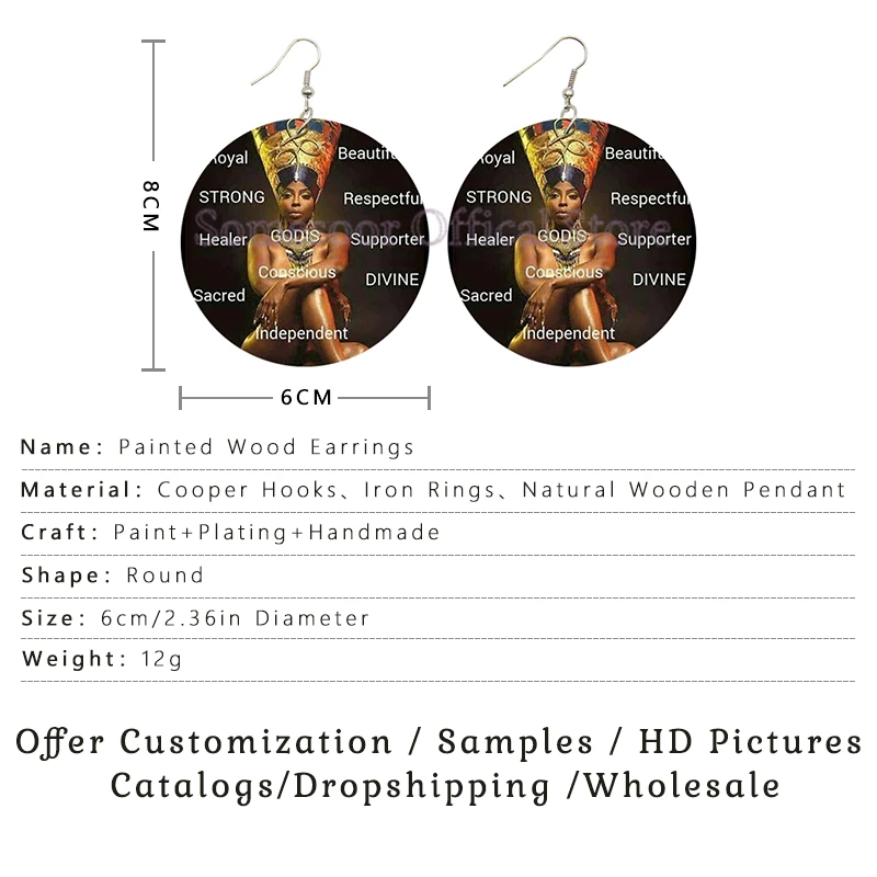 Деревянные серьги-подвески SOMESOOR, с изображением меланина, женск...