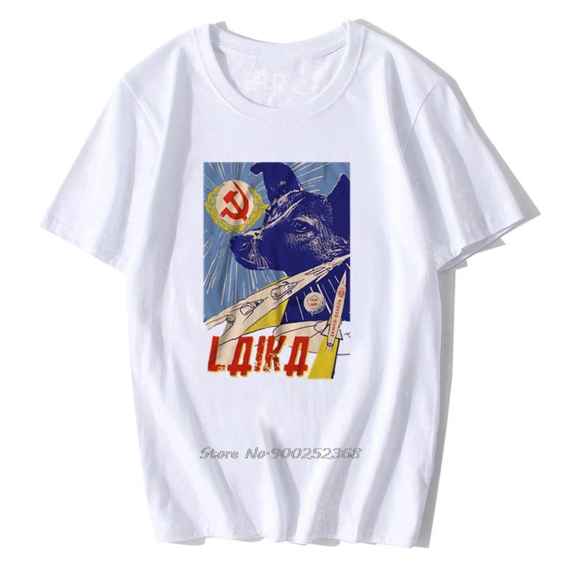 Футболка мужская хлопковая в стиле Харадзюку, Постер СССР, русская советская эра, космическая собака, рубашка в стиле хип-хоп, уличная одежда